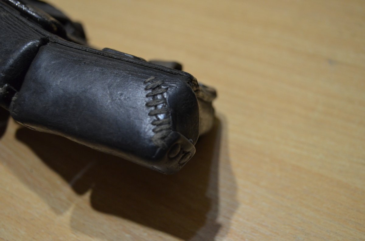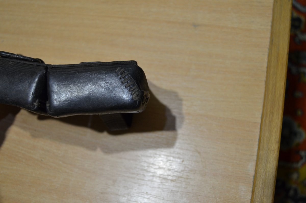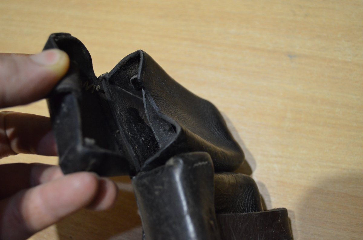 Ремонтный подсумок, кожа не пересохшая, заменена шлейка на среднем клапане и зашит порез на правом клапане.
