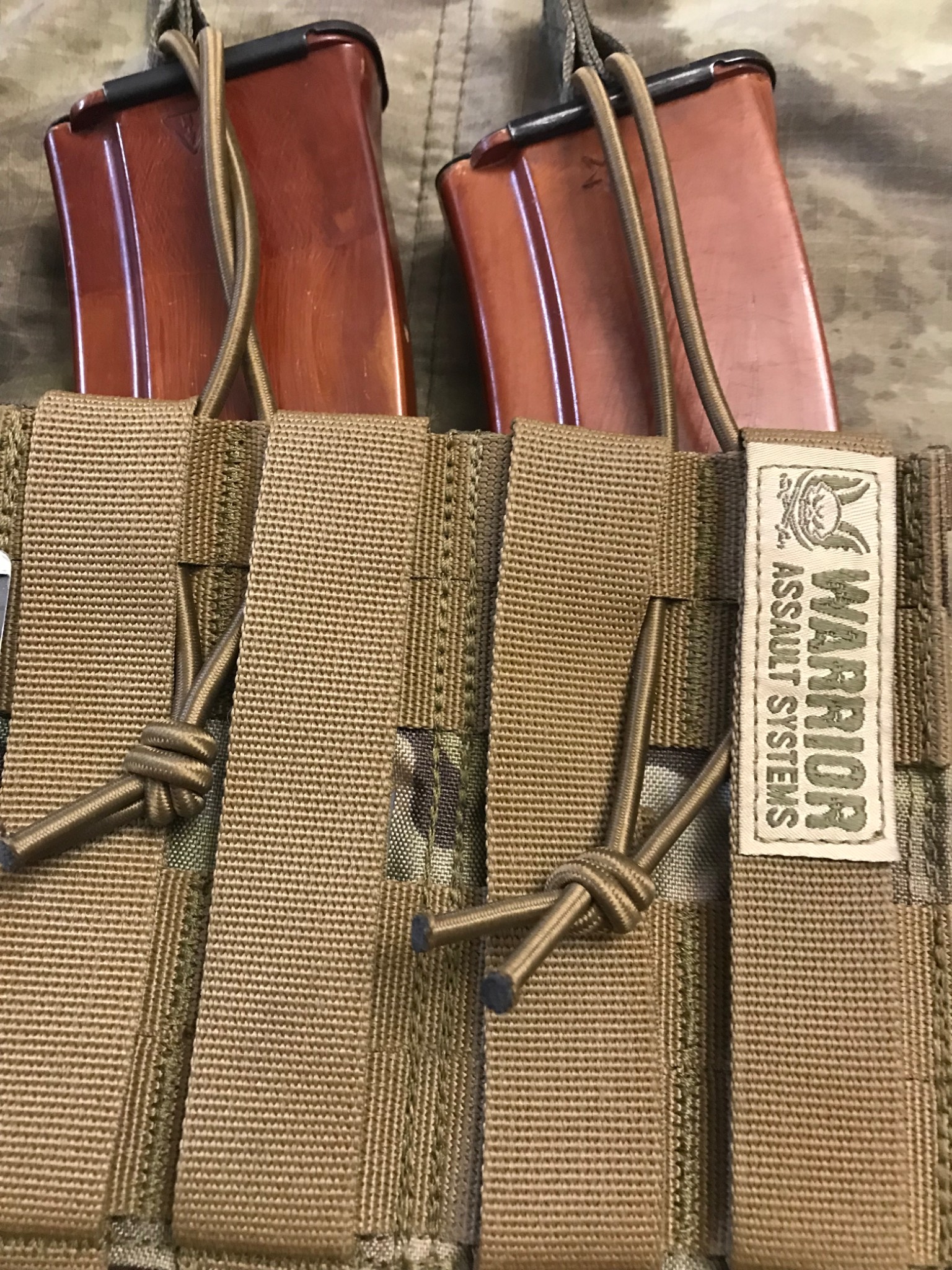 Подсумок для оружия Warrior Assault System Double Open Mag Pouch для АК 7,62 мм, предназначенный для быстрой смены магазинов, с эластичной фиксацией. 2 петли Molleband позволяют прикрепить ещё один подсумок для следующих магазинов: АК 7,62 мм. Размеры: примерно 15,5 x 3,5 x 11,5 см (Д x Ш x В), Вес: примерно 190 г. Подсумки для снаряжения WAS оснащены системой крепления Molle, что позволяет очень гибко крепить их к тактическим жилетам, разгрузочным жилетам, рюкзакам и ремням. Изготовлен из водоотталкивающей ткани Cordura 1000D, все стропы соответствуют требованиям US Mil Spec. Используемые материалы имеют самые низкие показатели инфракрасного излучения (99,8%) и производятся в соответствии с военными стандартами.