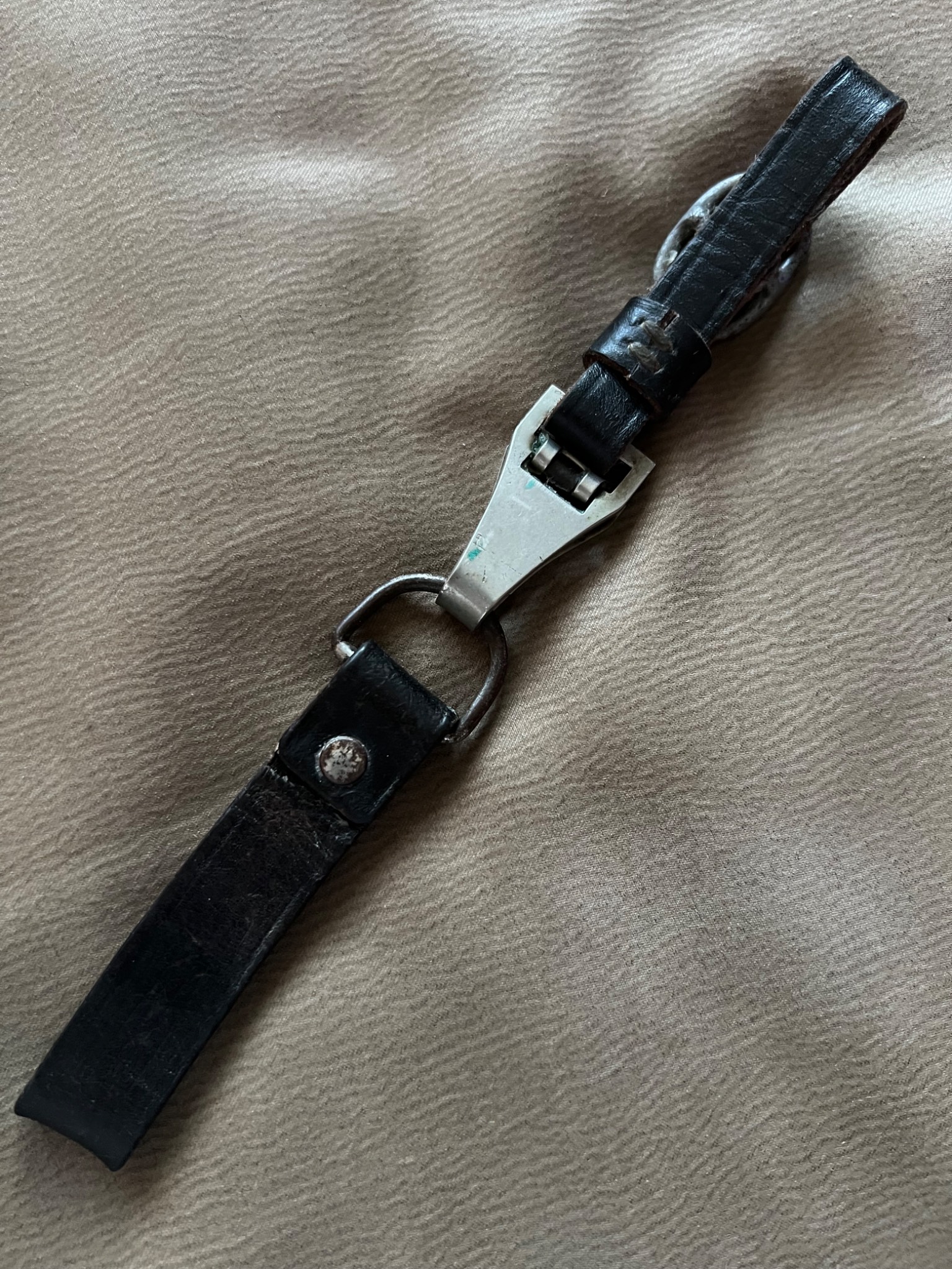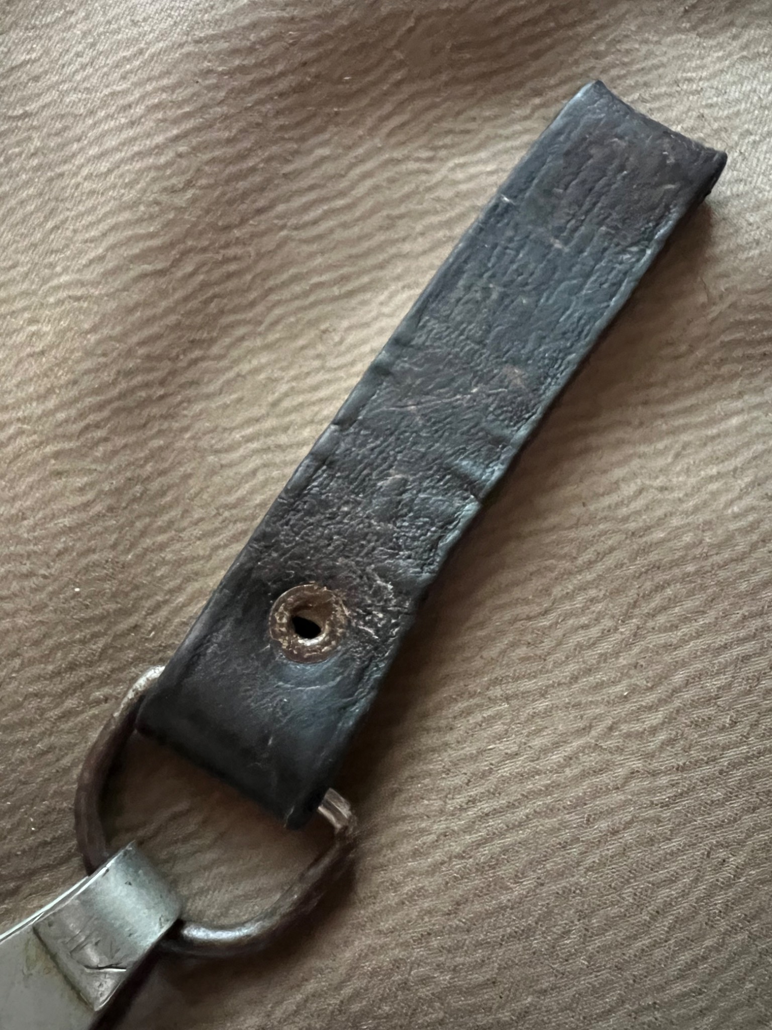 Классный оригинальный двойной подвес кинжала СС ,хорошее состояние кожи,ременная петля из-за небольших потертостей от времени слегка стала коричневого оттенка!