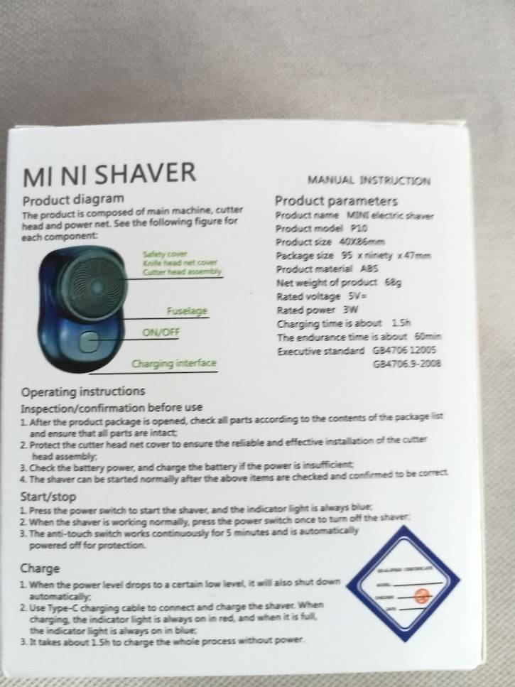 пристрій швидко заряджається, вистачить лише 1 годину, щоб повністю зарядити міні бритву.