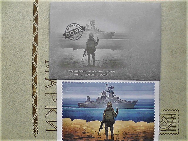 Поштова картка "Русскій воєнний корабль іді..! " та конверт " Русскій воєнний корабль, ....Всьо! "