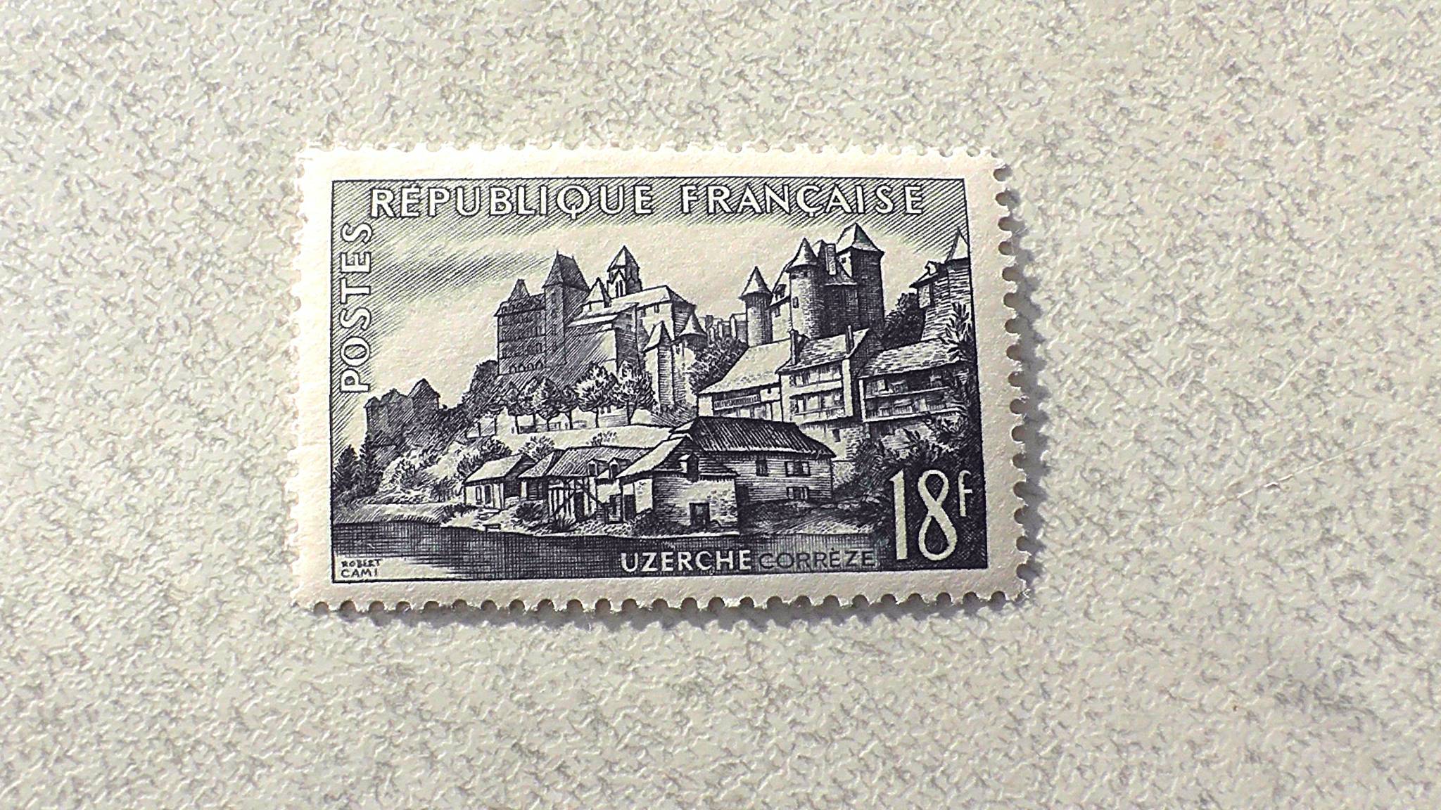 Поштова марка Франція " Місто Юзерш в Коррезє " 1955 рік **