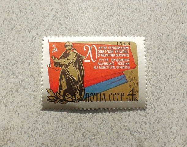 Поштова марка СРСР " 20-річчя звільнення України від фашистської окупації " 1964 рік **