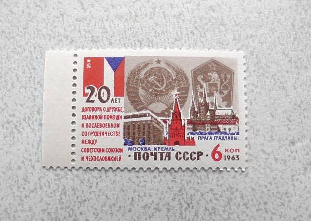 Поштова марка СРСР " 20 років Договору про дружбу між СРСП та Чехословаччиною " 1963 рік **