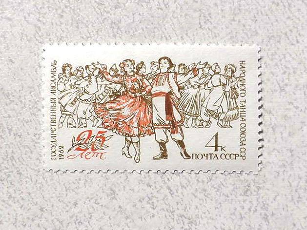 Поштова марка СРСР " 25 років Державному ансамблю народного танцю Союзу СРСР " 1962 рік **