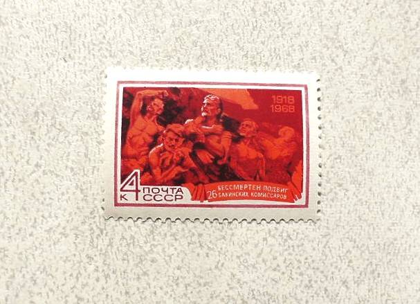 Поштова марка СРСР " 50 років подвигу 26 бакінських комісарів " 1968 рік **