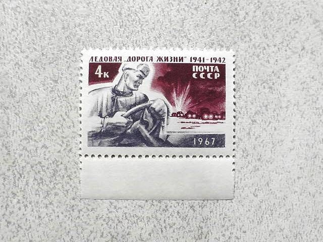 Поштова марка СРСР " Льодова Дорога життя (1941-1942) в період блокади Ленінграда " 1967 рік **