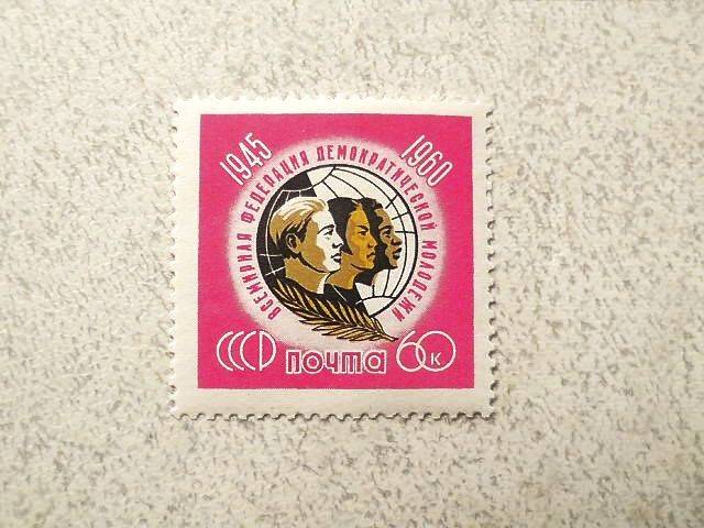 Поштова марка СССР " 15 років Всесвітньої федерації демократичної молоді " 1960 рік **