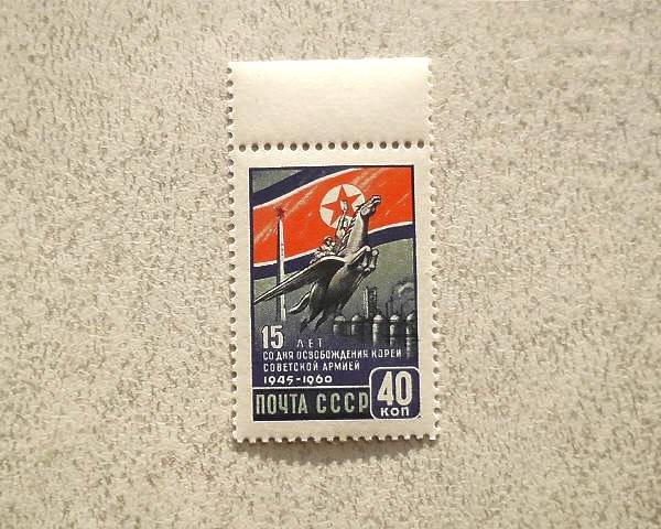 Поштова марка СССР 1960 рік " 15 років звільнення Кореї Армією " **