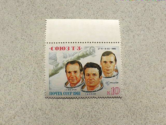 Поштова марка СССР " Політ транспортного корабля Союз Т-3 " 1981 рік **