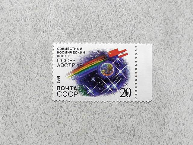 Поштова марка СССР " Спільний радянсько-австрійський космічний політ " 1991 рік **