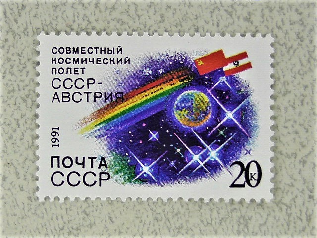 Поштова марка СССР " Спільний радянсько-австрійський космічний політ " 1991 рік **