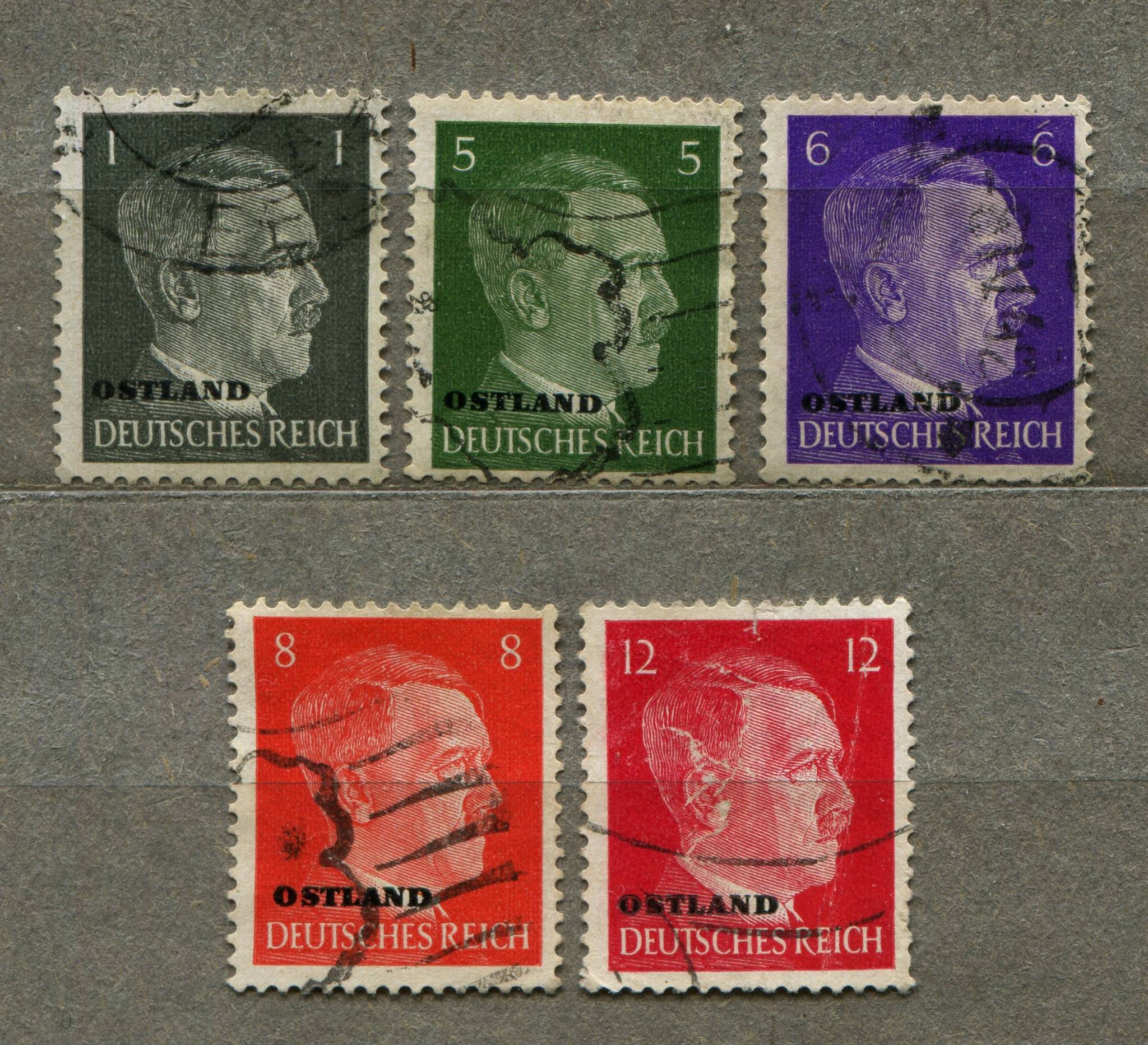 Поштові марки райхскомісаріату Остланд, наддрук Ostland (5 шт)