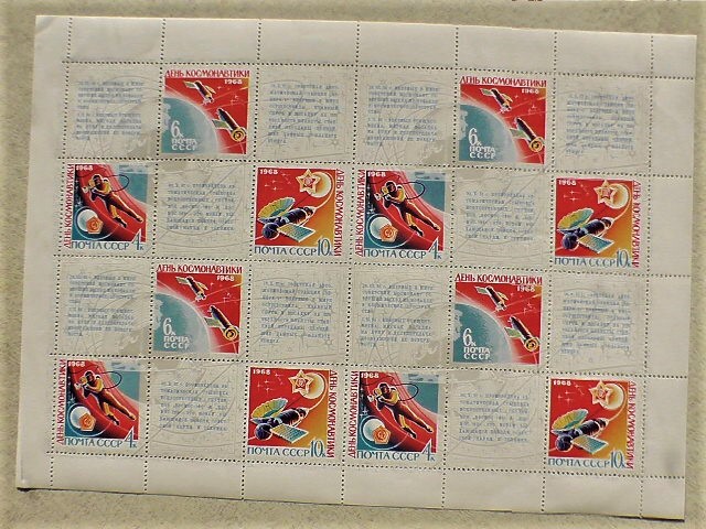 Поштовий аркуш марок СРСР " День космонавтики " 1968 рік **