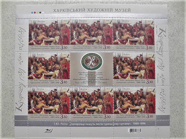 Поштовий аркуш марок " Запорожці пишуть листа Султанові " 2014 рік **