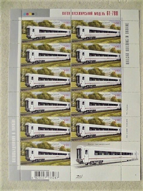 Поштовий лист марок " Ж.Д. Транспорт. Вагон пасажирський " 2012 рік