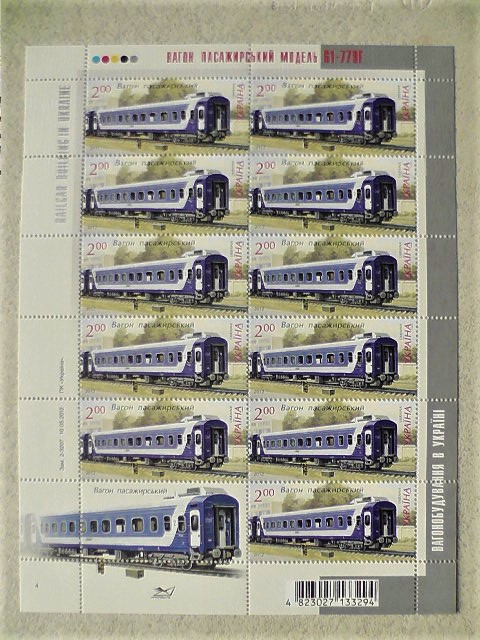 Поштовий лист марок " Ж.Д. Транспорт. Вагон пасажирський " 2012 рік