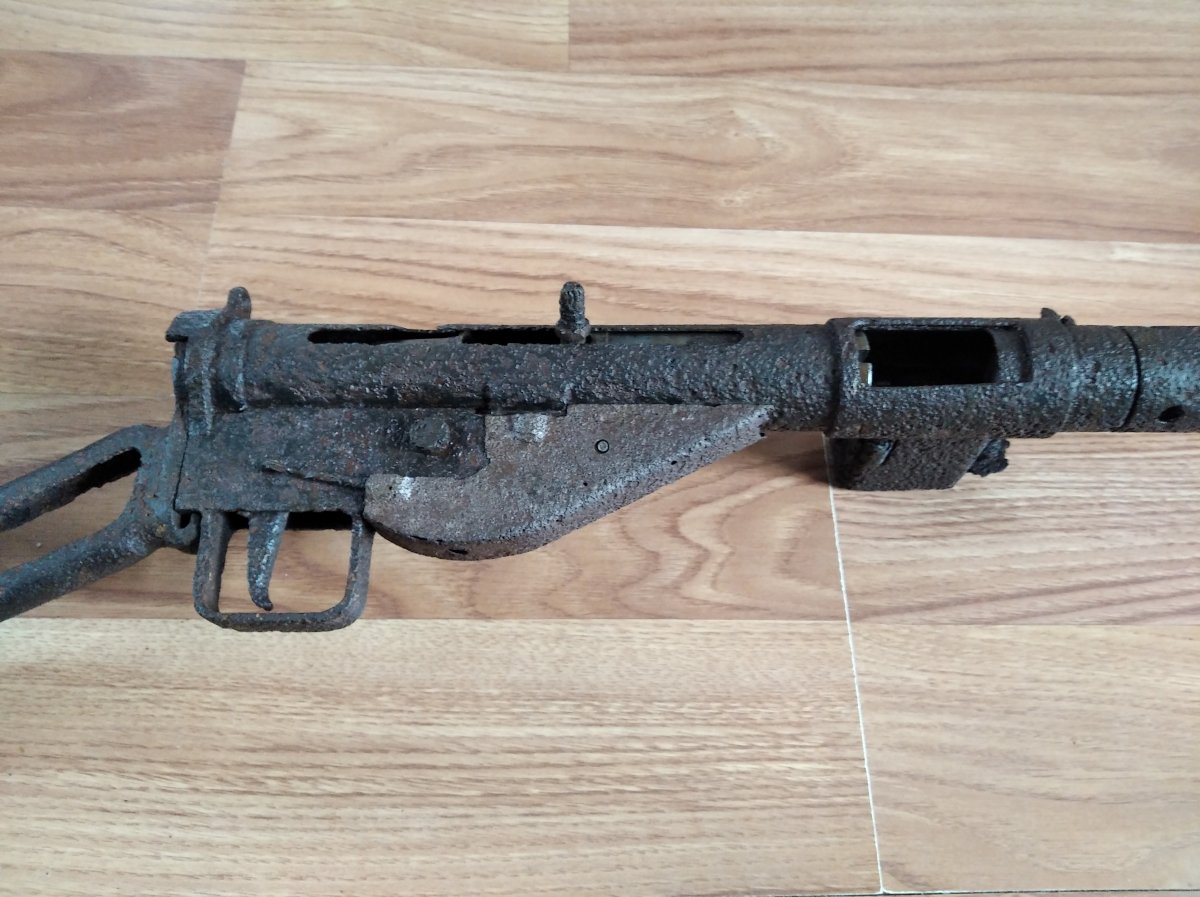 ПП Стен, все розбираеться і щолкае,окрім не перекручуеться шахта магазина навколо рами. Не мае бойовоі пружини затвора і магазину, не хватае шпонки для кришки захисту усм.Усм працюе відмінно,переключаеться од.оч,кнопка магазину працюе,патронник в нормі.Деактив три отвори згідно правил,під штіфти для СХП. Затвор все працюе, вибивач присутній. Доп питання задавайте,дам відповідь.Ствол вкорочений на виході 5мм,був неестетичний скол.Метал бодрий, свіщів сквозних не мае,в живу виглядае набагато краще.