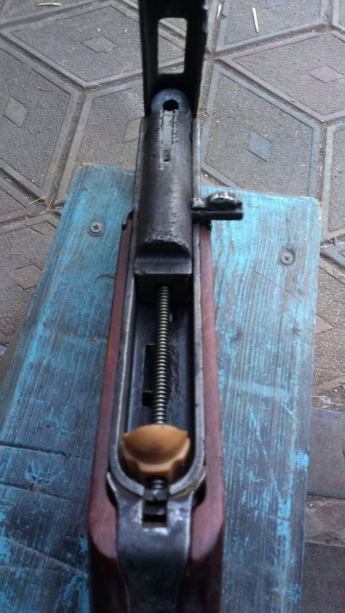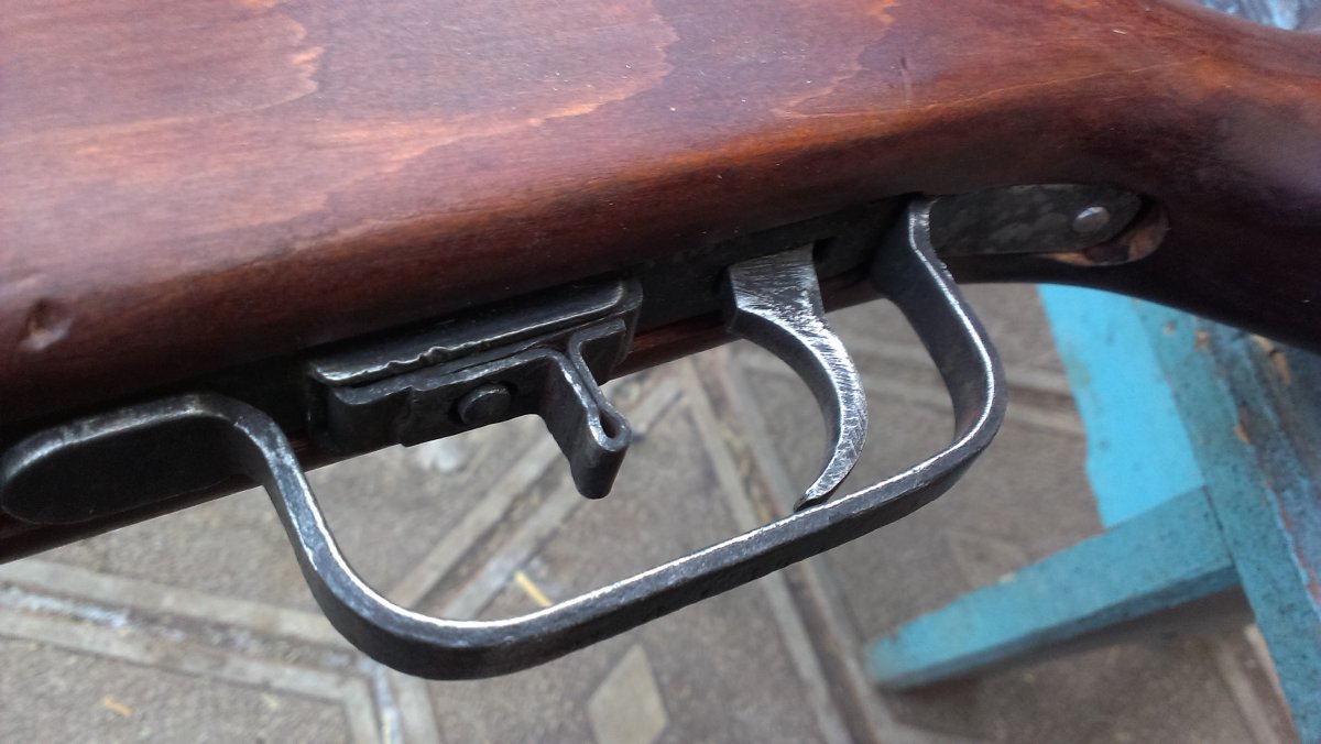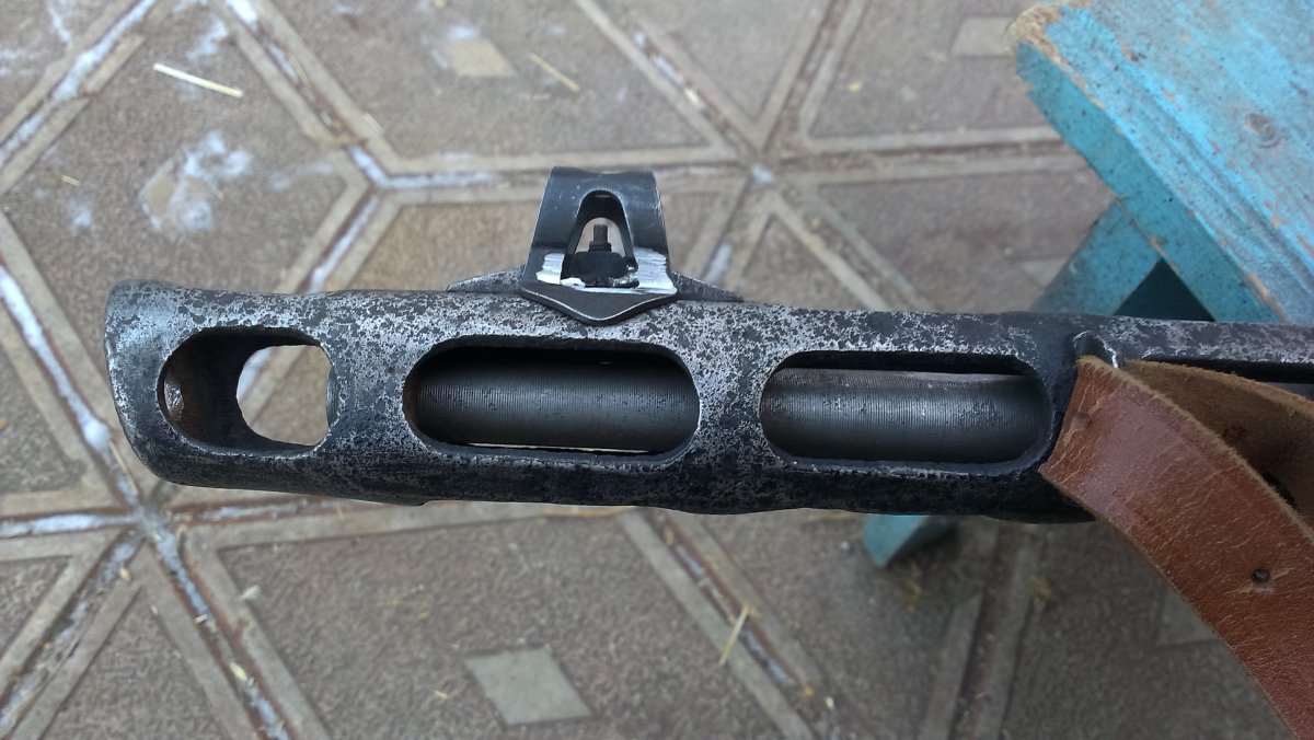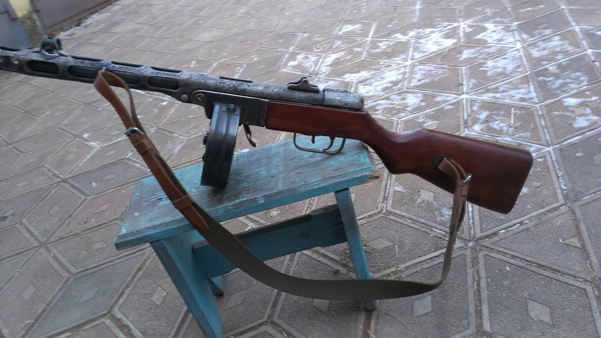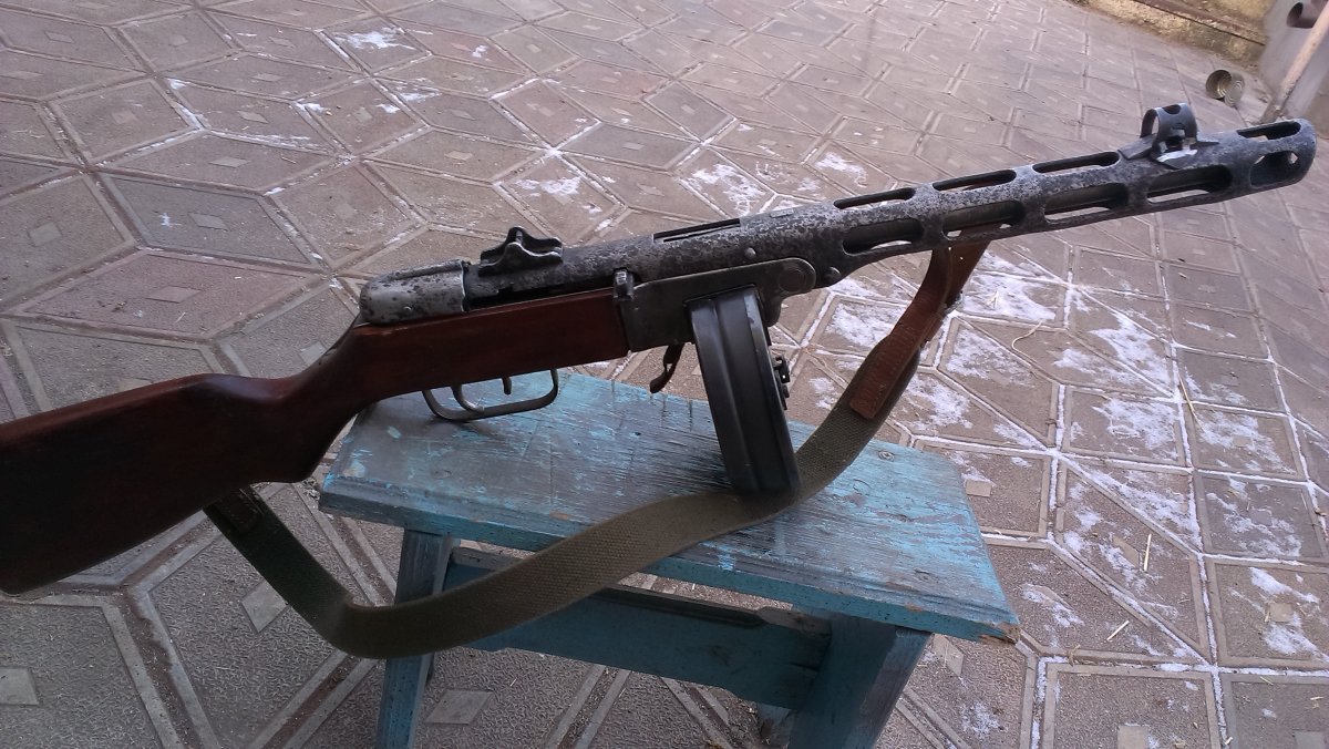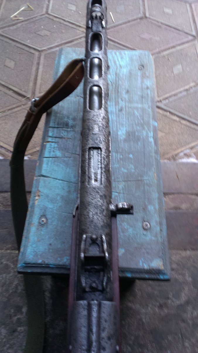 Вот такой ППШ под СХП!Метал очень бодрый, рама и УСМ на одном номере, на кожухе просматривается год, дерево новодел, затвор работает хорошо, ударник удленённый под МПУ, ствол оригинальный,патронник хороший, в стволе стоит три штивта и на конце жеклёр с отверстием для выхода пороховых газов (на фото видно), намушник новый! В комплекте ремень, бубен целый!