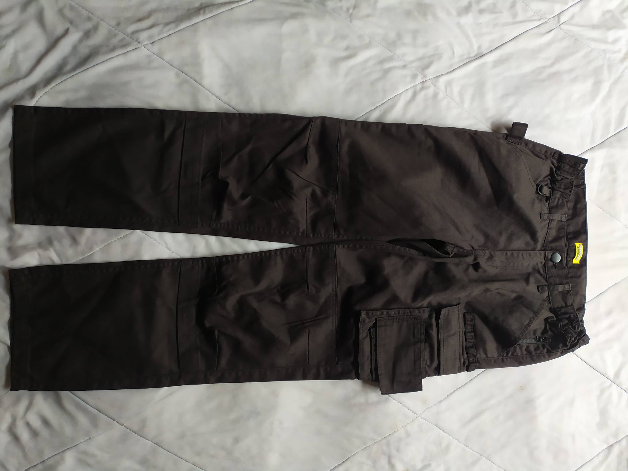 Фирменные брюки из смесовой ткани средней плотности. Выполнены как крепкие и практичные для работы, но за счёт функционала отлично подойдут для поисковой деятельности. Пояс по бокам подрезинен для удобной посадки. На коленях второй слой ткани с возможностью вставки различной защиты и демпферов. Брюки имеют целую систему карманов различного объёма и доступа, практически на все случаи. А также крепёжно-подвесные кольца и петли. Цвет – чёрный; на фото цвет местами искажён – в реальности окрас ровный.