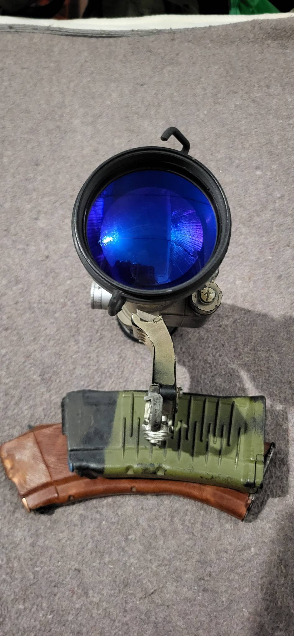 Прицел ночной 1ПН141-1 для снайперский винтовок так же можно установить и на АК при наличии крепления на автомате, внешне со следами эксплуатации, работает штатно, питание от 1-й батарейки типа АА или аккумуляторной батарейки по размеру АА, батарейка будет в комплекте, из минусов на передней части у резинки порваны крепления на фото видно.