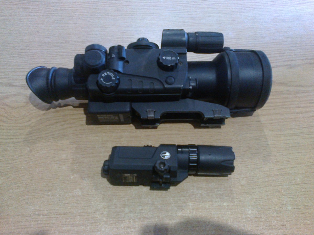 С диодным ик- осветителем. Плюс дополнительный инфракрасный фонарь Pulsar 808с в комплекте. крепление вивер.