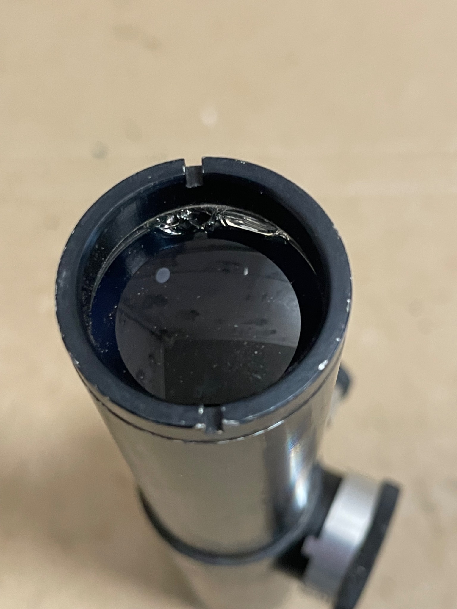 На передній лінзи присутній скло який ніяк не влія на працездатність фото на просвіт робив удома при поганому освітленні якщо потрібні фото приближення задавайте питання.
