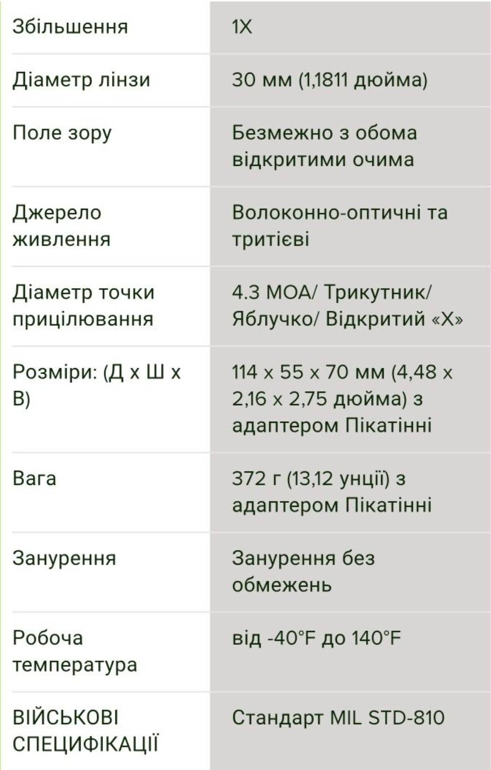 Об'єктив діаметром 30мм забезпечує більше поле огляду, і швидке захоплення цілі.