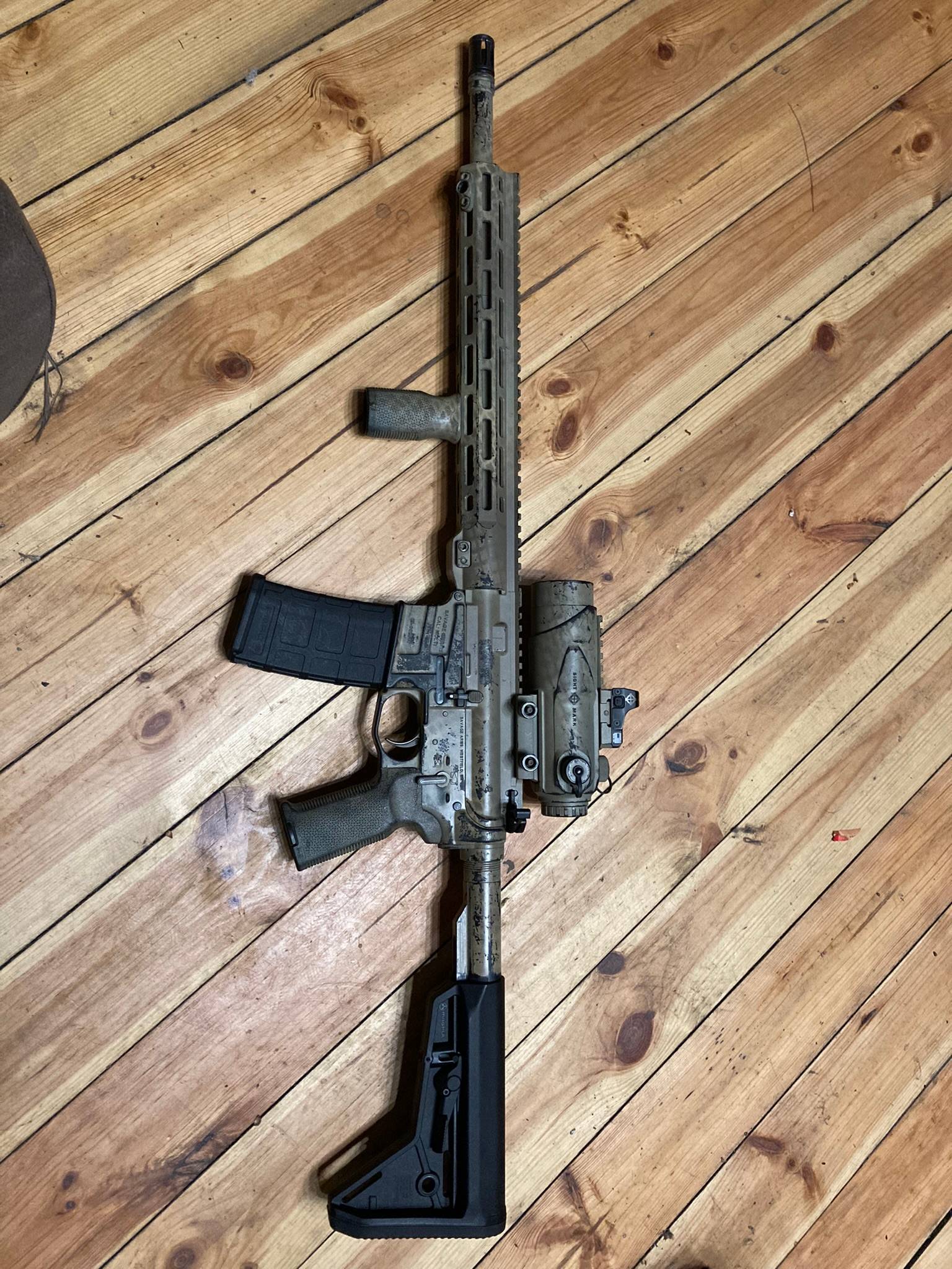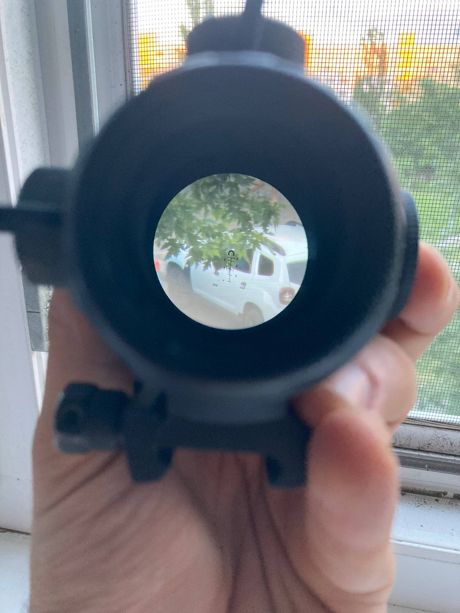Приціл в стані нового, працює ідеально. Має велику, зручну сітку під набої як 55, так і 62 гран. Стояв на AR-15, а потім і на М4, помагав покращувати рускіх - приклад на фото. В комплекті кришка-бікіні, бленда, захисна відкидна кришка, коробка, інструкція.