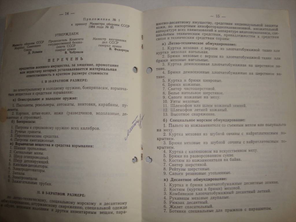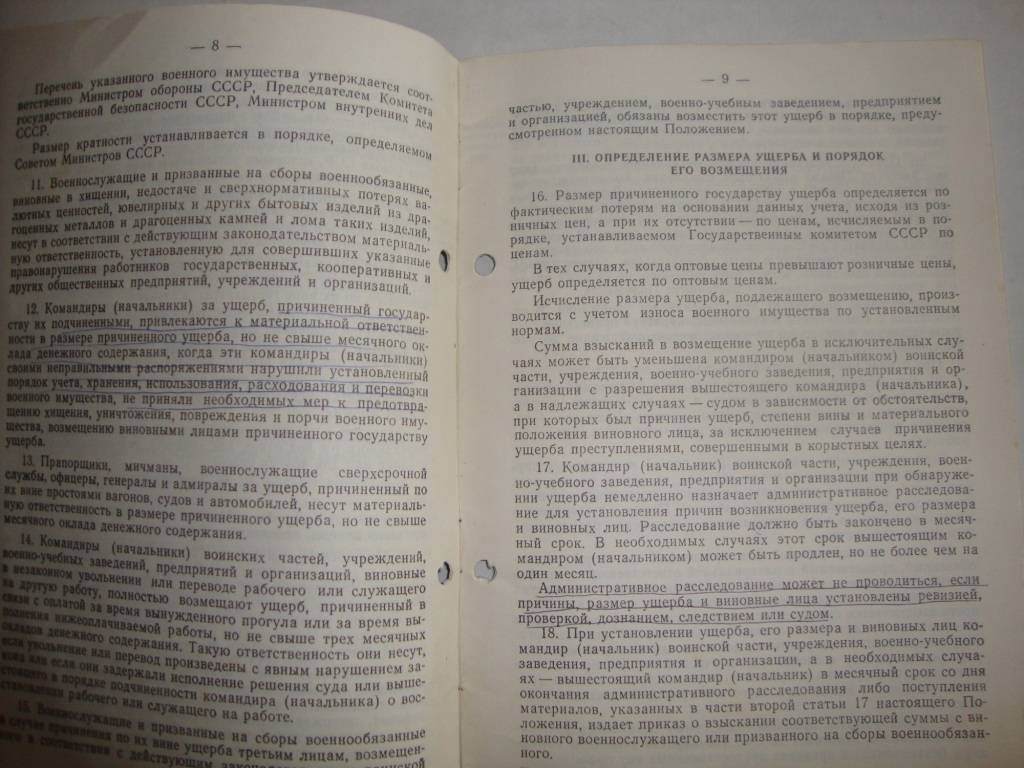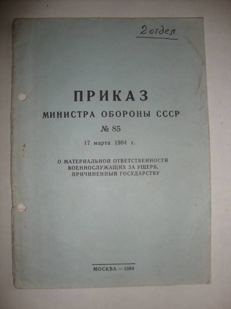Приказ МО СССР "О материальной ответственности военнослужащих за ущерб, причинённый государству"