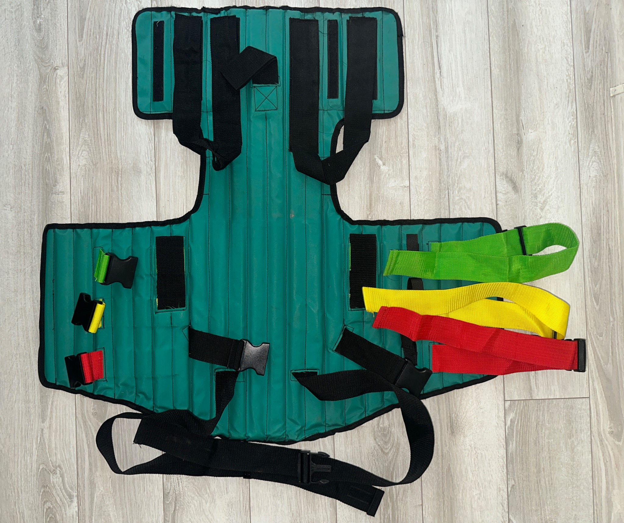 Пристрій є напівжорстким, забезпечуючи підтримку хребта, а також має фіксуючі ремені для надійної фіксації пацієнта.