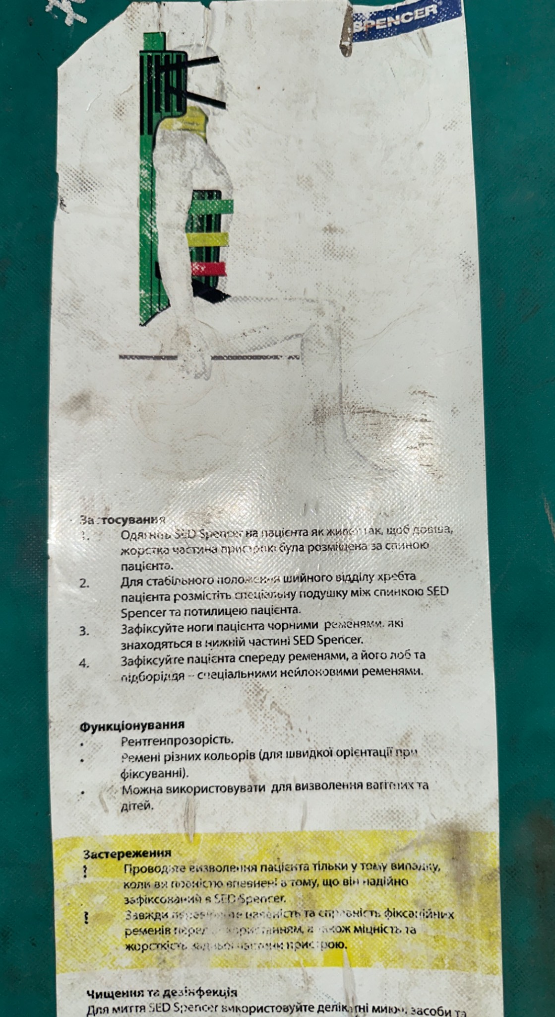 Пристрій для екстракції та іммобілізації хребта Spencer Extrication Device (SED)