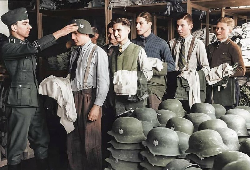 Призывники вермахта получают обмундирование.