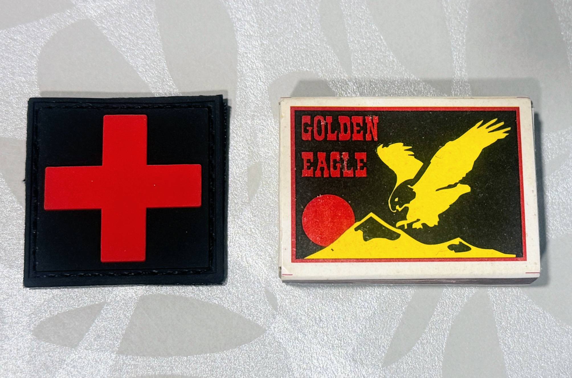 Квадратний гумовий (ПВХ) патч “Червоний Хрест” на чорному фоні.