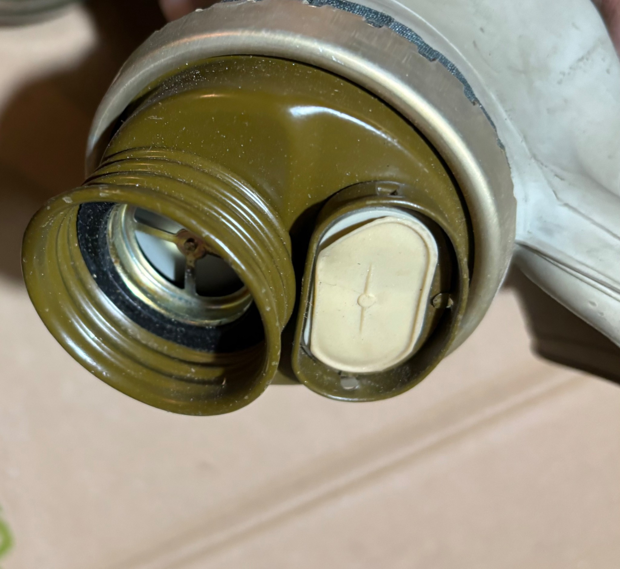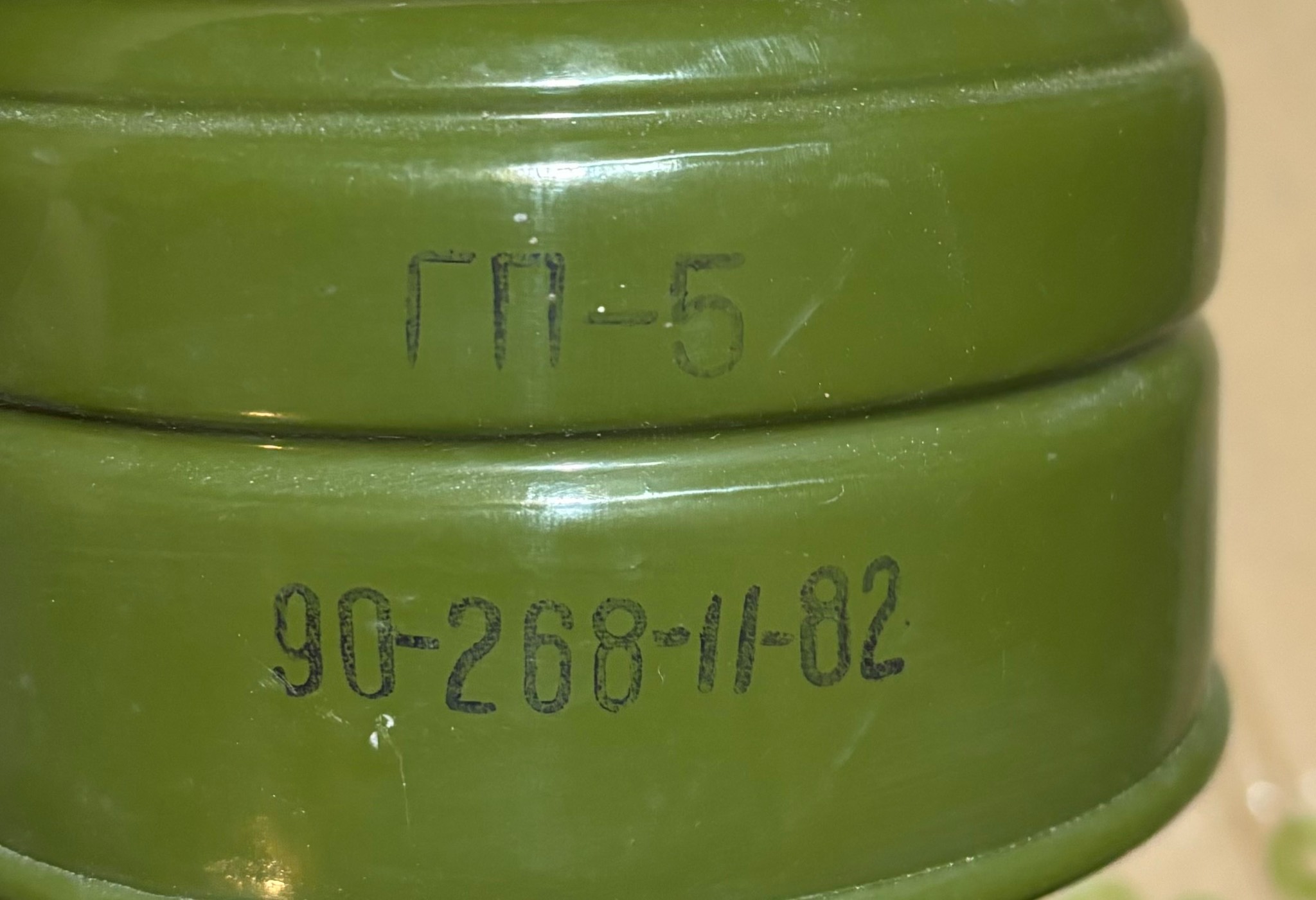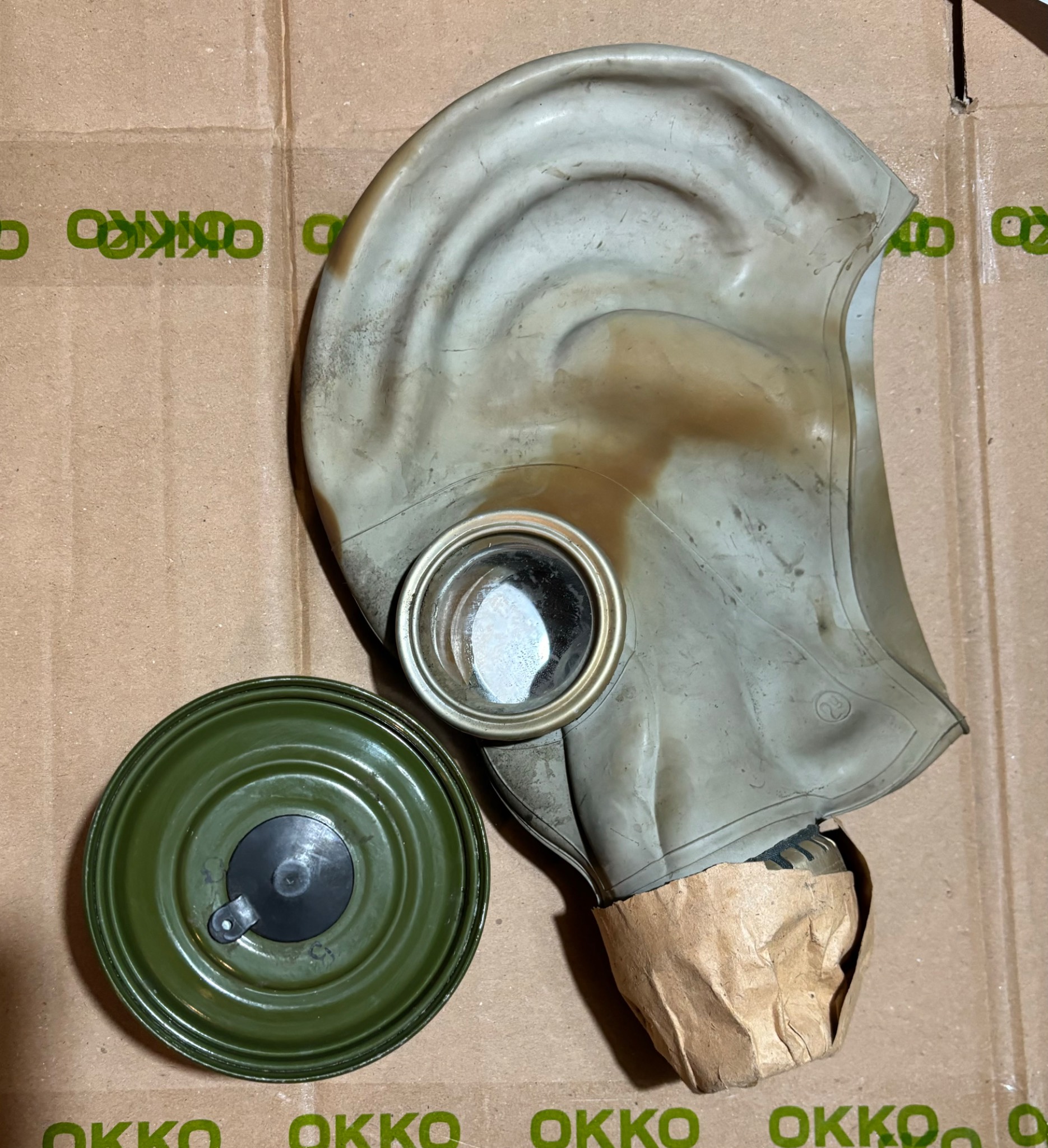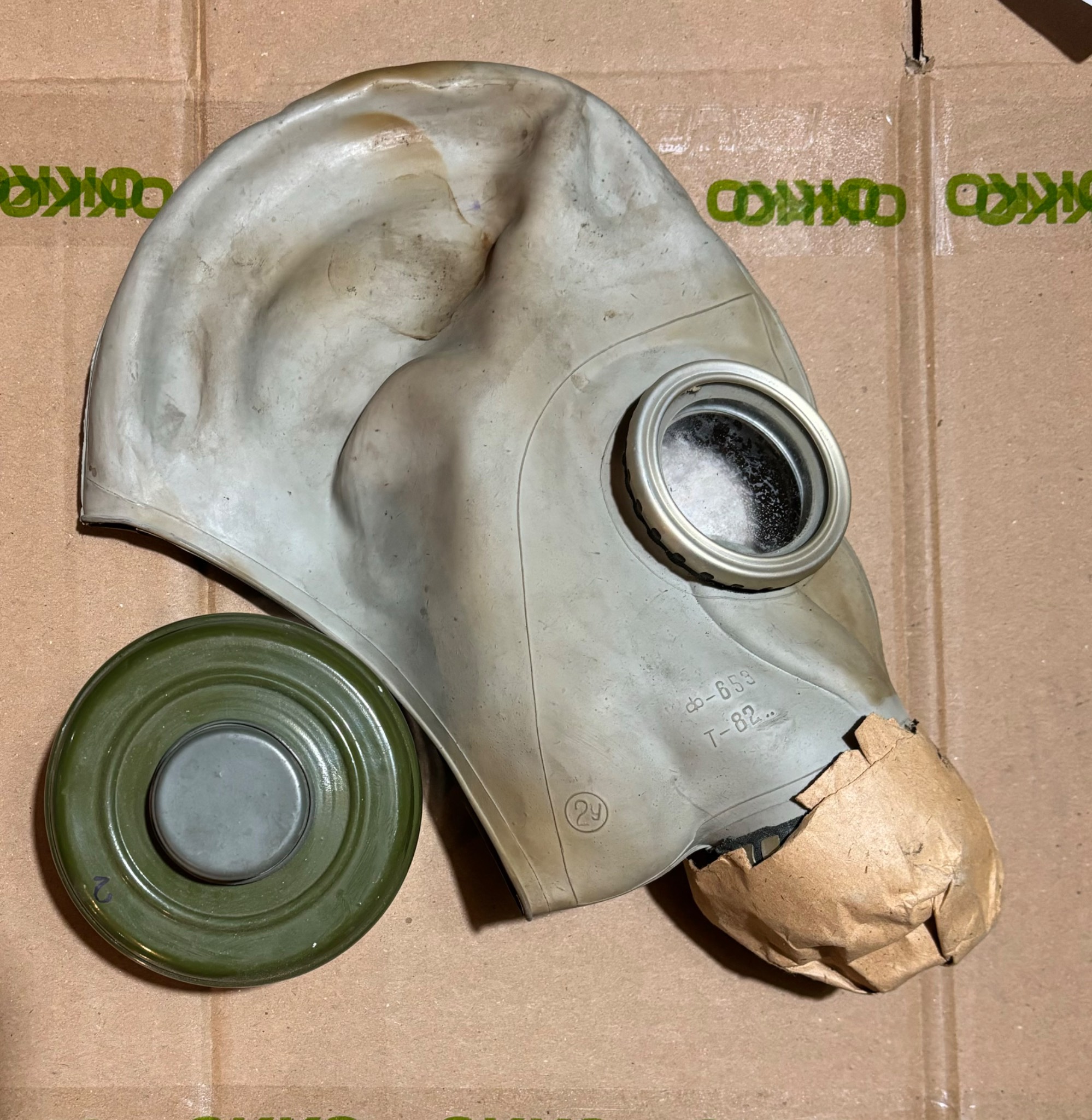 Протигаз ГП-5 часів Холодної війни, зі зберігання, не використовувався, є сліди недбалого зберігання. Розмір 2у