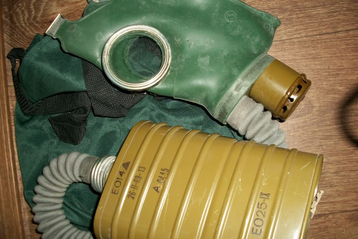 Новый противогаз 3 размера, в комплекте с новым фильтром ЕО-14, подсумком и карандашами КПЗО. На фильтре имеются следы коррозии.