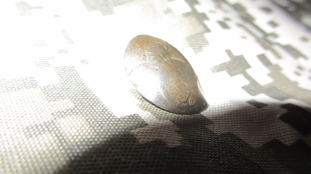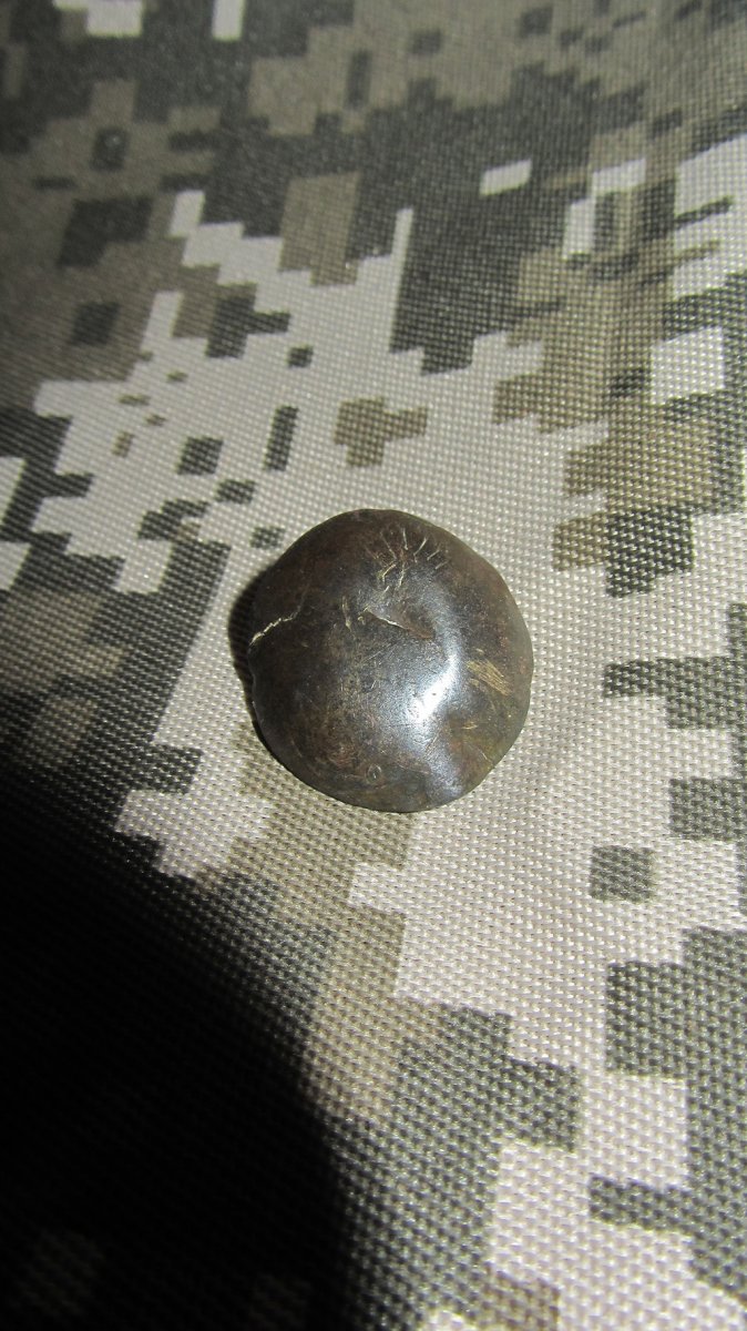 Предположительно на пуговице была обозначена цифра 3 или 9 или 5 с точкой в конце. Точнее разобрать не представляется возможным.