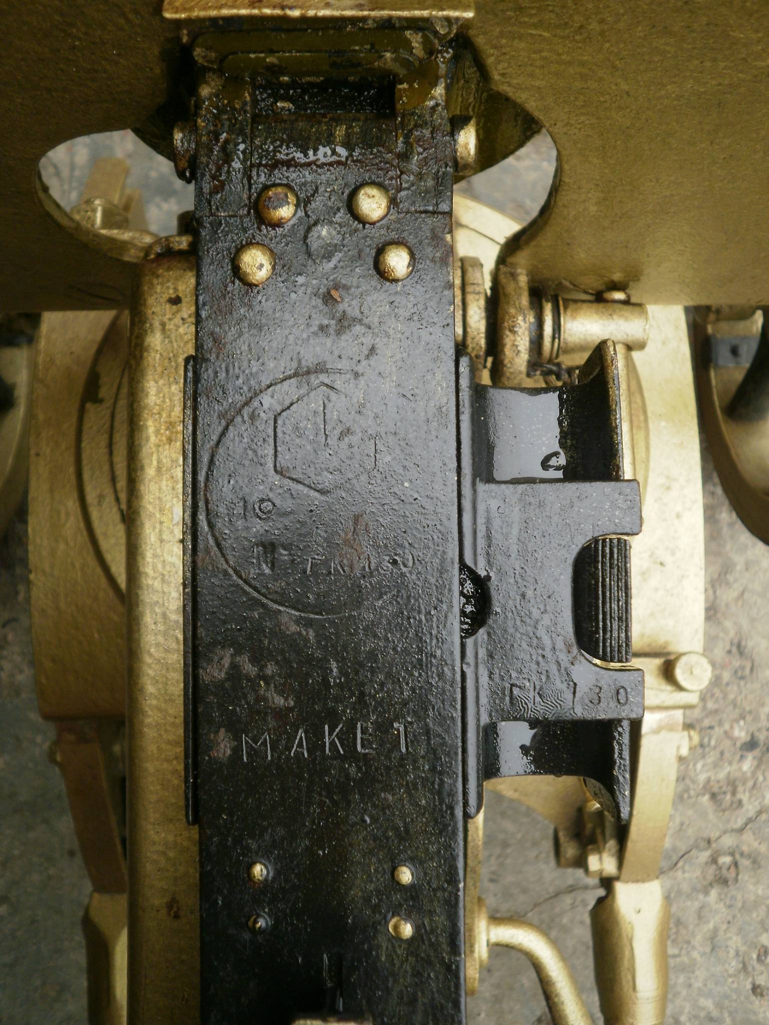 Лафет станины из цветного металла, обозначил стрелочкой латунные части