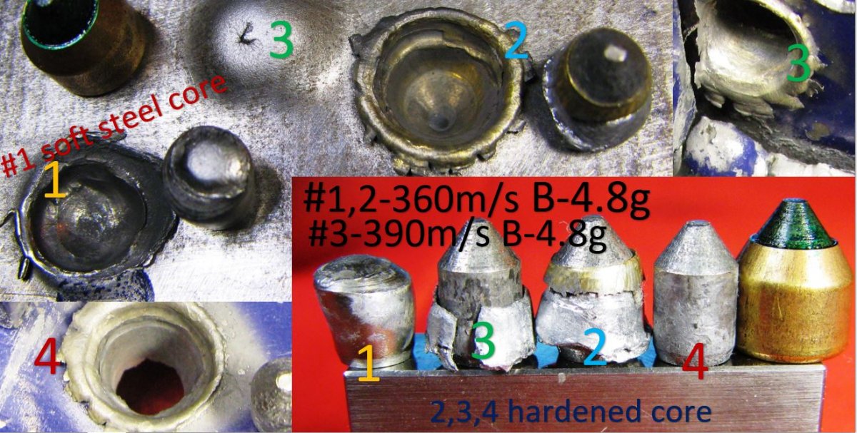 оболочка латунь, сердечник термоупрочненная сталь У10.