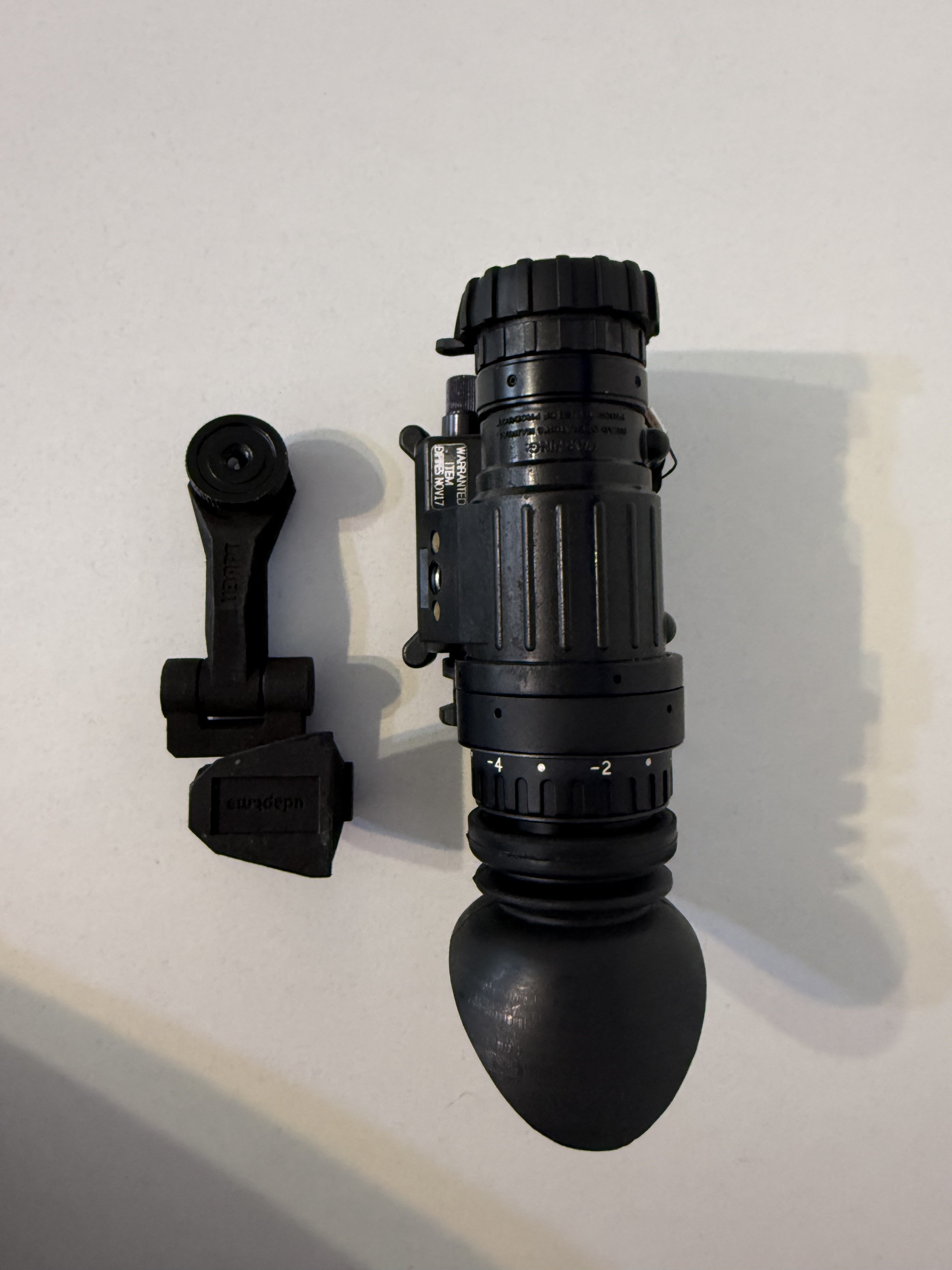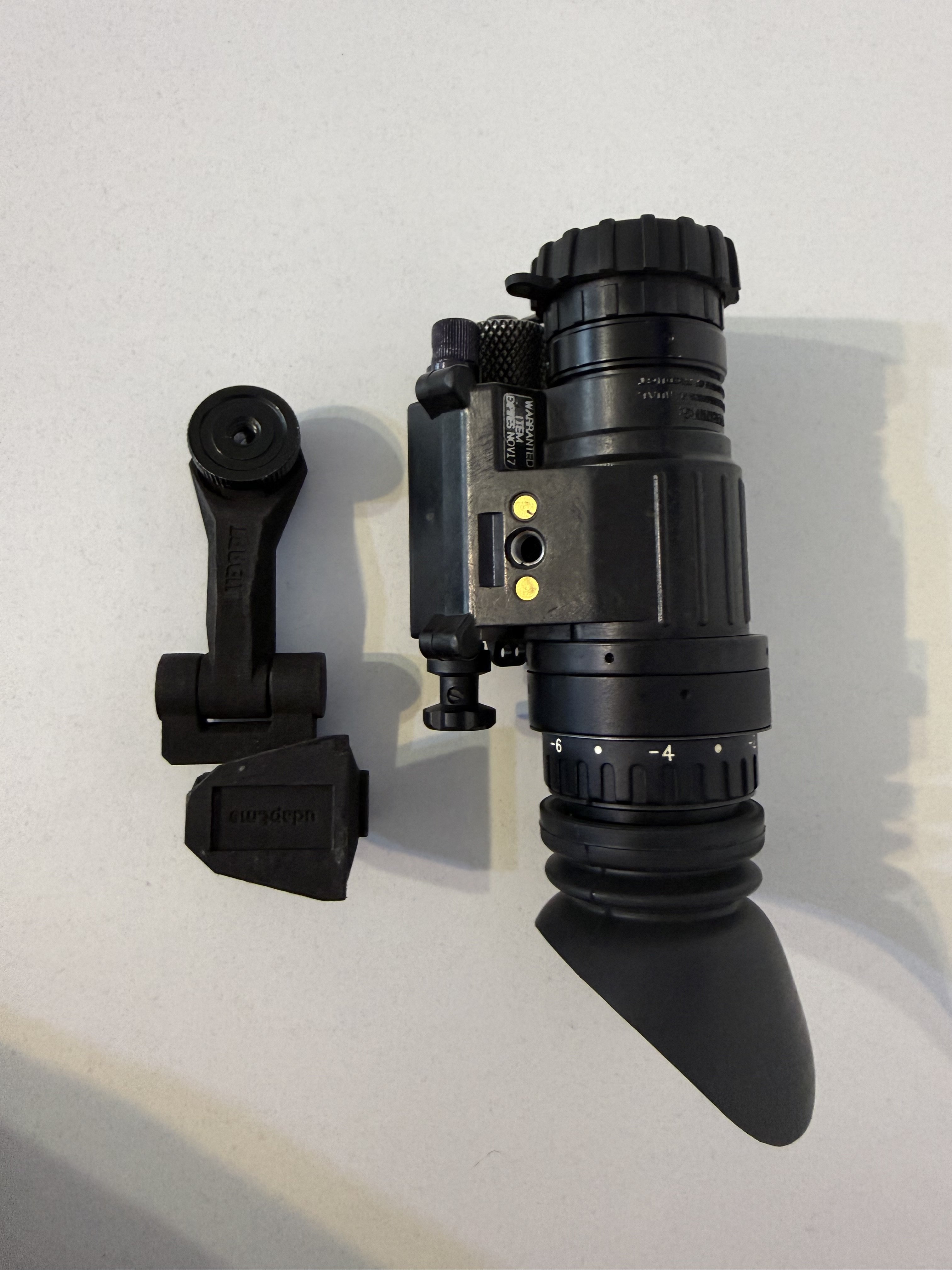 PVS14 ген3 на зеленом фосфоре с джеармом для крепления , имеет ручную регулировку яркости, комплект на фото , состояние б,у линзы без потёртостей , изображение и состояние по фото смотрите . Цена адекватная состоянию . Полностью рабочий . Прибор ночного видения имеет кратность 1 не приближает что даёт возможность ходить с ним и ездить за рулём ( видит через стекло ) .