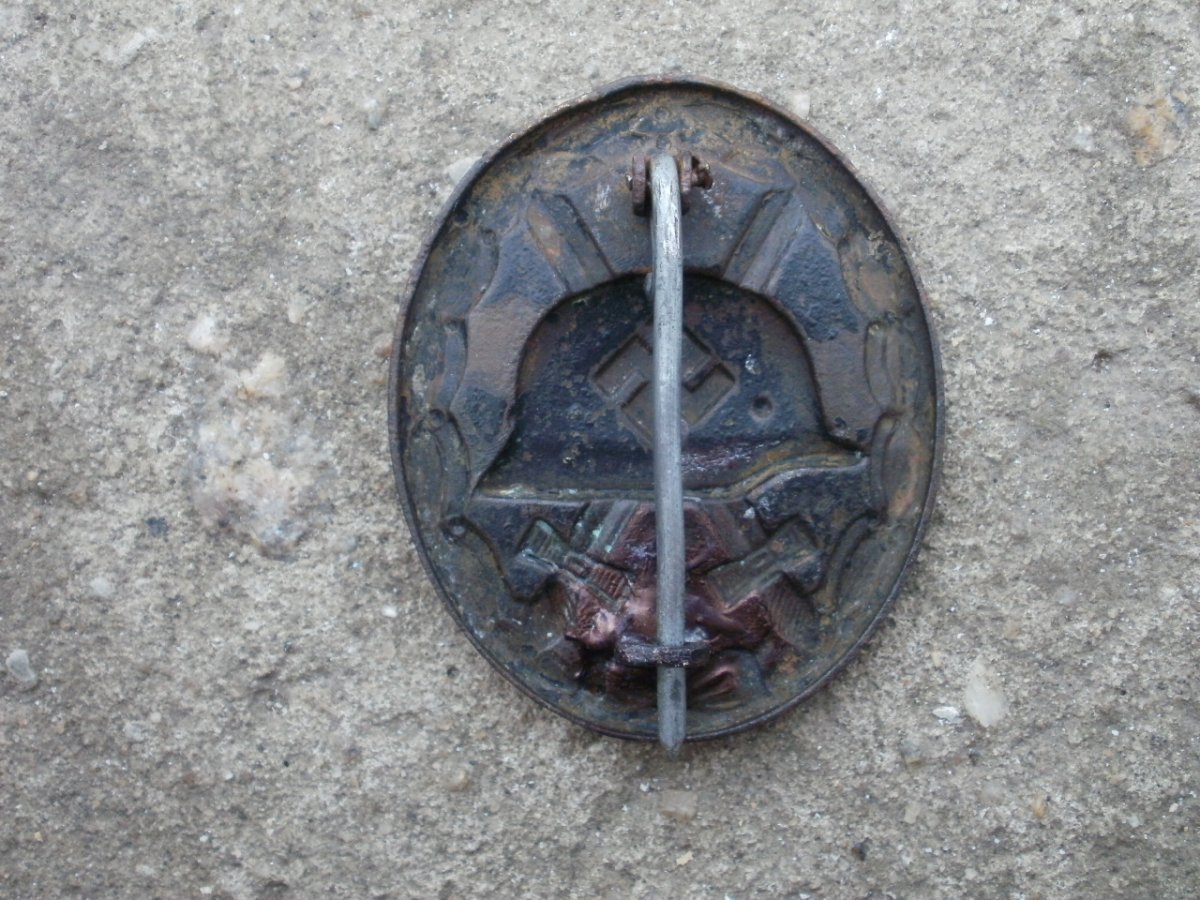 Вот такой знак за ранение,с остатками родной краски,помыт только водой.