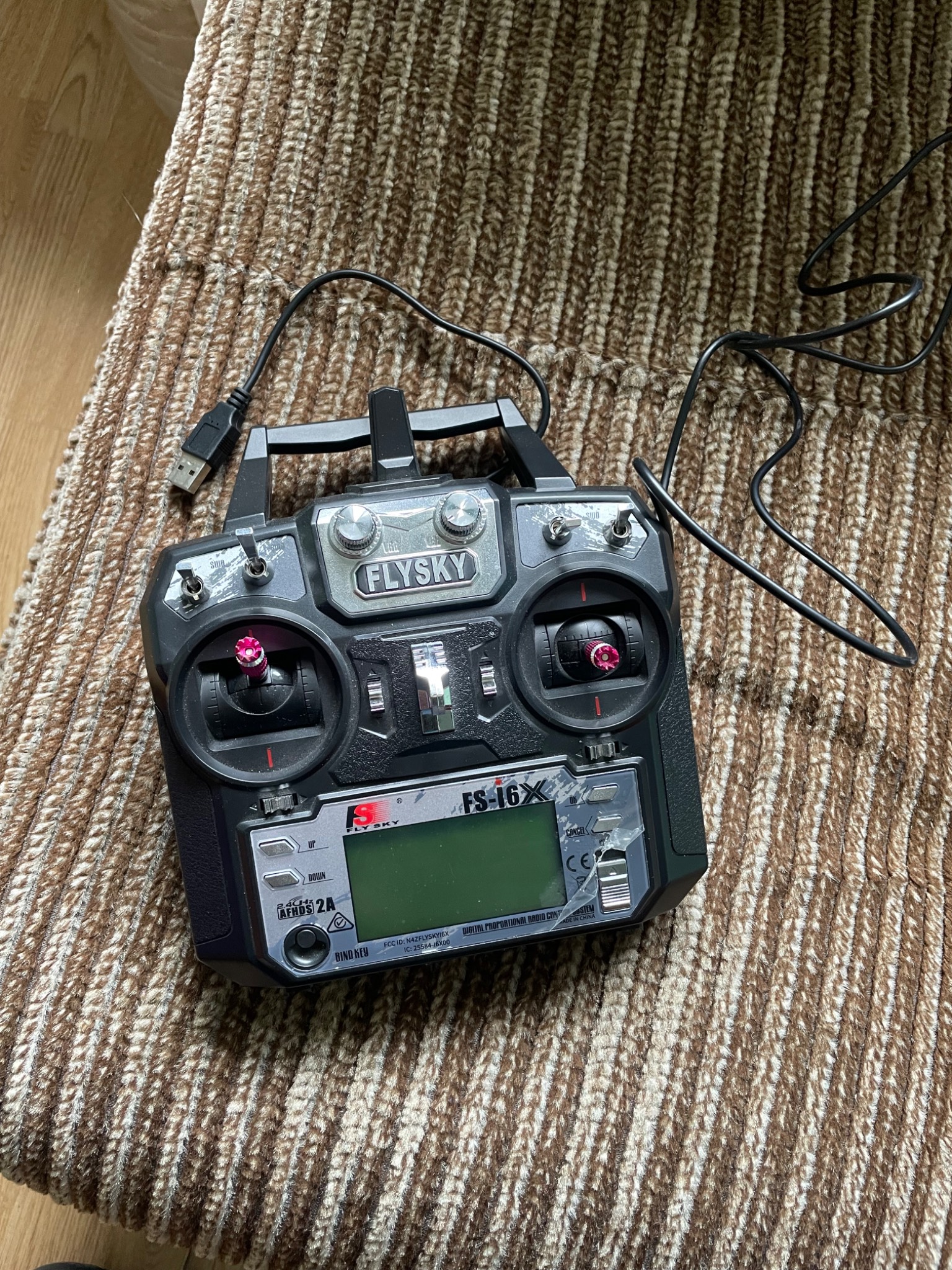 Контролер з шнуром і приймачем. Можна використовувати як для симулятора так і для керованої моделі ( літаковий тип, квадрокоптерний, кораблик для риболовлі, наземний дрон). Все в новому робочому стані