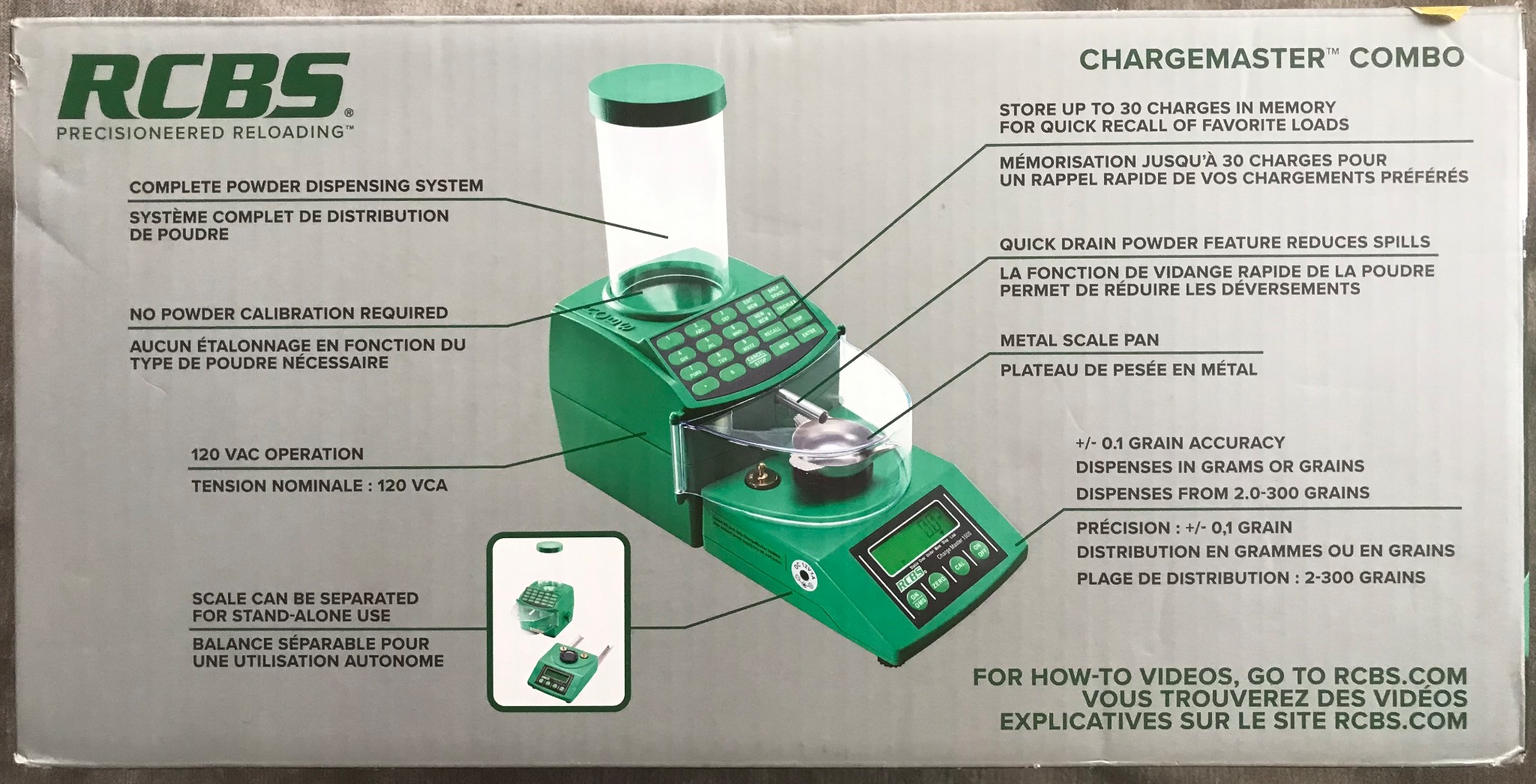 Ваги з дозатором пороху ChargeMaster Combo складаються з одельная працюють ваг ChargeMaster 1500 Scale і дозатора пороху ChargeMaster Dispenser. Ця парочка в зборі дає Вам неперевершену комбінацію швидкості і точності. Більше немає необхідності своєчасної калібрування типу використовуваного порошку. Просто заповніть бункер ємністю більше одного фунта бездимних порохом, введіть бажаний вага заряд і натисніть кнопку раздачі.Среднее час дозування становить менше 30 секунд для заряду пороху вагою в 60 гран.