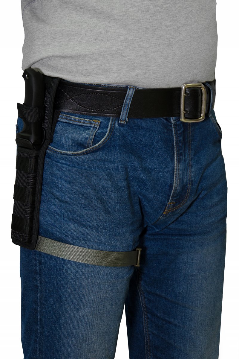 Эластичный ремешок на бедро для фиксации нижнего конца ножа, кобуры и пр. Фурнитура итальянская, морозостойкая.
