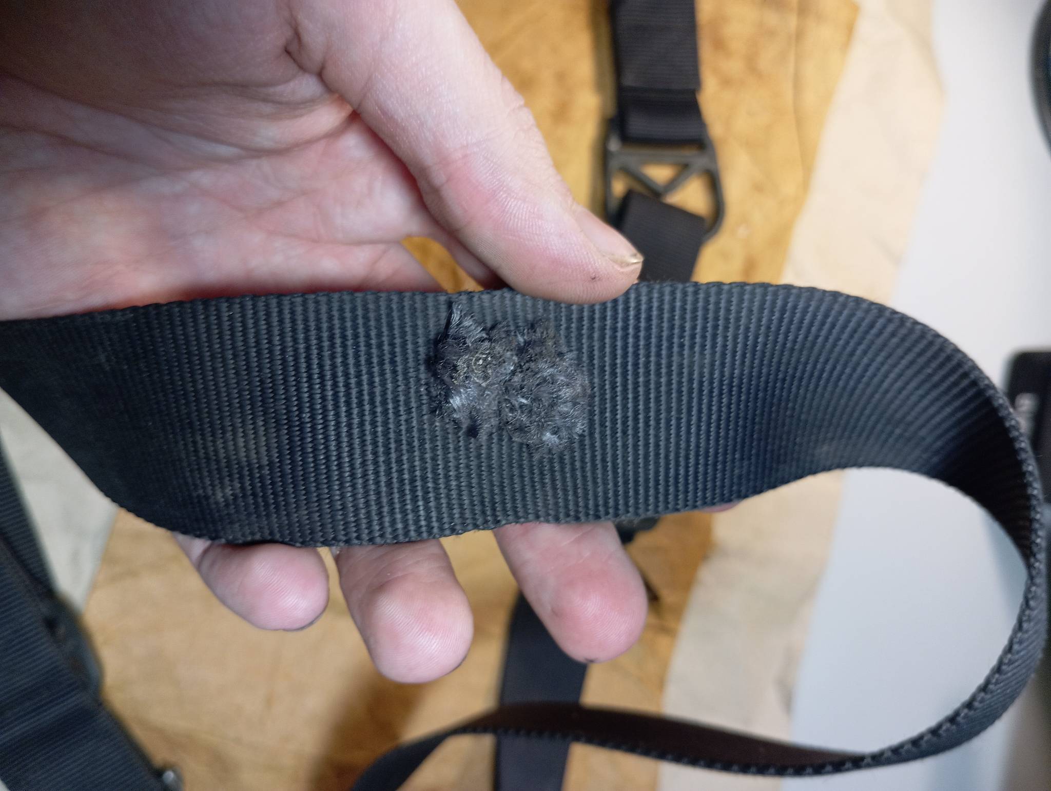 Ремінь з кацапського АК-12. Загалом гарний стан, але є одне кульове. Фурнітура ціла, карабінчик справний