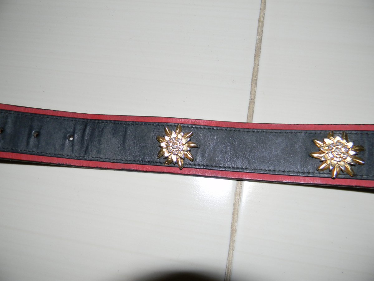ремінь мисливський,трекінговий,Тіроль,із едельвейсами. accessorio zurich(аксесуари Цюрих ) Довжина ремня 84см.ширина 4 см.вставки латунь.пряжка латунь.