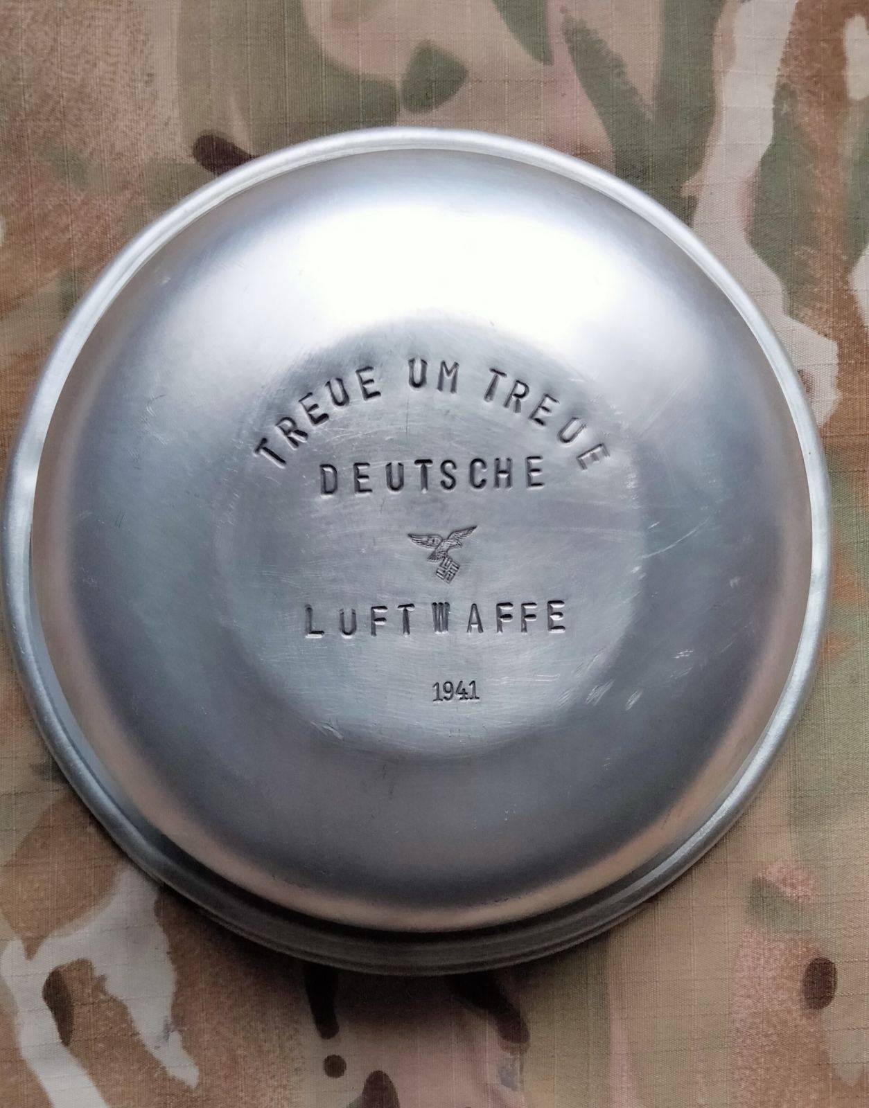Алюміній, 650мл. нова, у використанні не була, репліка великої глибокої тарілки парашутистів Люфтваффе з девізом “Вірність в вірності”, предмет і клейма сучасні. Оплата на карту Привата, пакую сам. Відправка Укрпошта, або Нова пошта. Пакую сам. Кошти від продажу підуть на потреби артдивізіону бойової бригади.