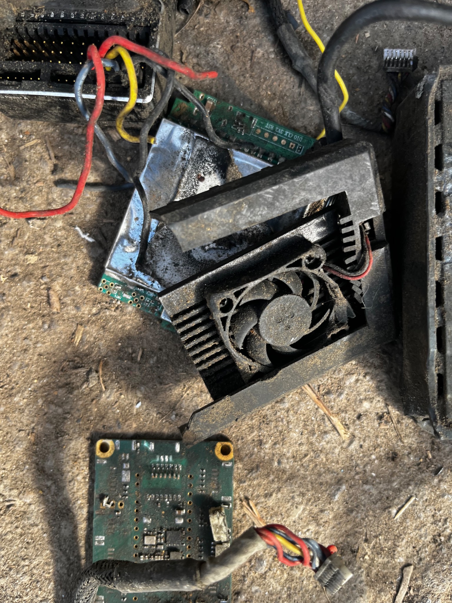 Бпла жорстко розбився на твердому ґрунті,на фото все з від нього залишилось.
