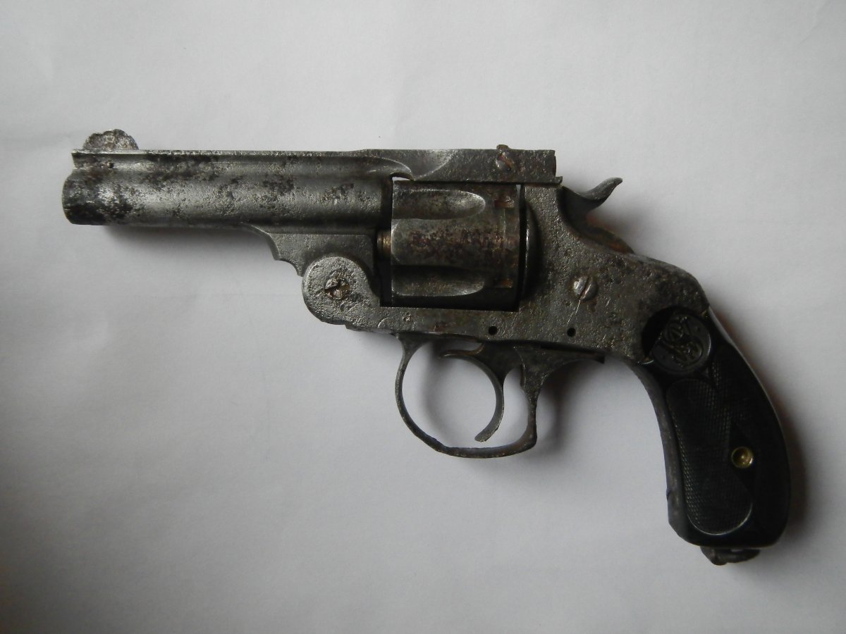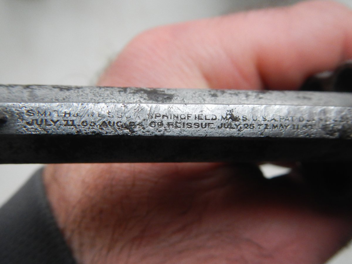 Добрый день. Предлагаю вам револьвер марки Смит и Вессон чердачного сохрана.Ствол без каверн,сломана защелка запирания ствола и боевая пружина.Поверху ствола имеется длинная надпись-клеймо завода-изготовителя.