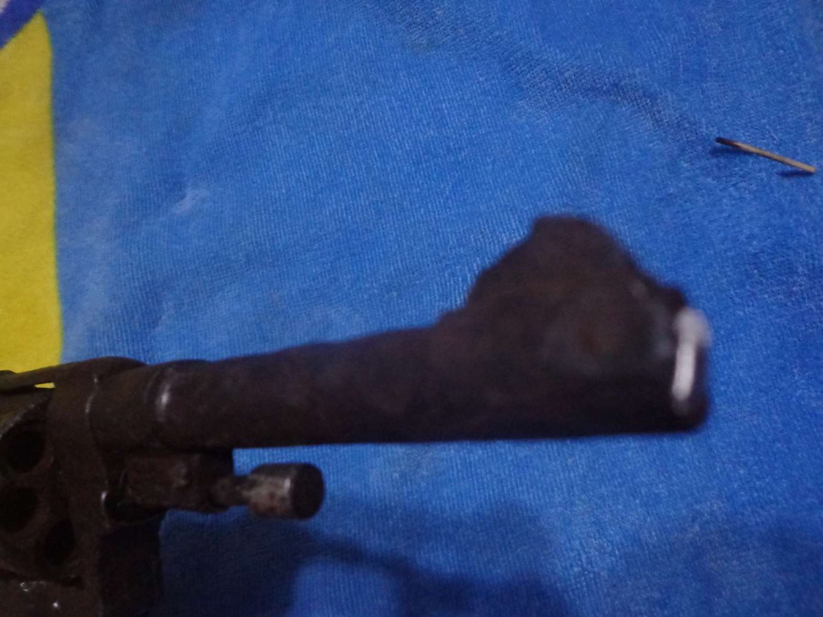 Деактив-ствол залит свинцом.Чердак ,не земля.После снятия крышки хватило капли масла что б заработал,работает как часики,пружина супер(видно родное хромирование).Просматривается звезда.ничего не шлифовалось.Повторяюсь-работа всех частей безукоризненная.Из новодельного-один болтик левой накладки.Накладки оригинал,но з другого макета.Родной збор,за исключением складской оси барабана.Ствол не чищен,коморы не чищены совсем,визуально раковин нет.